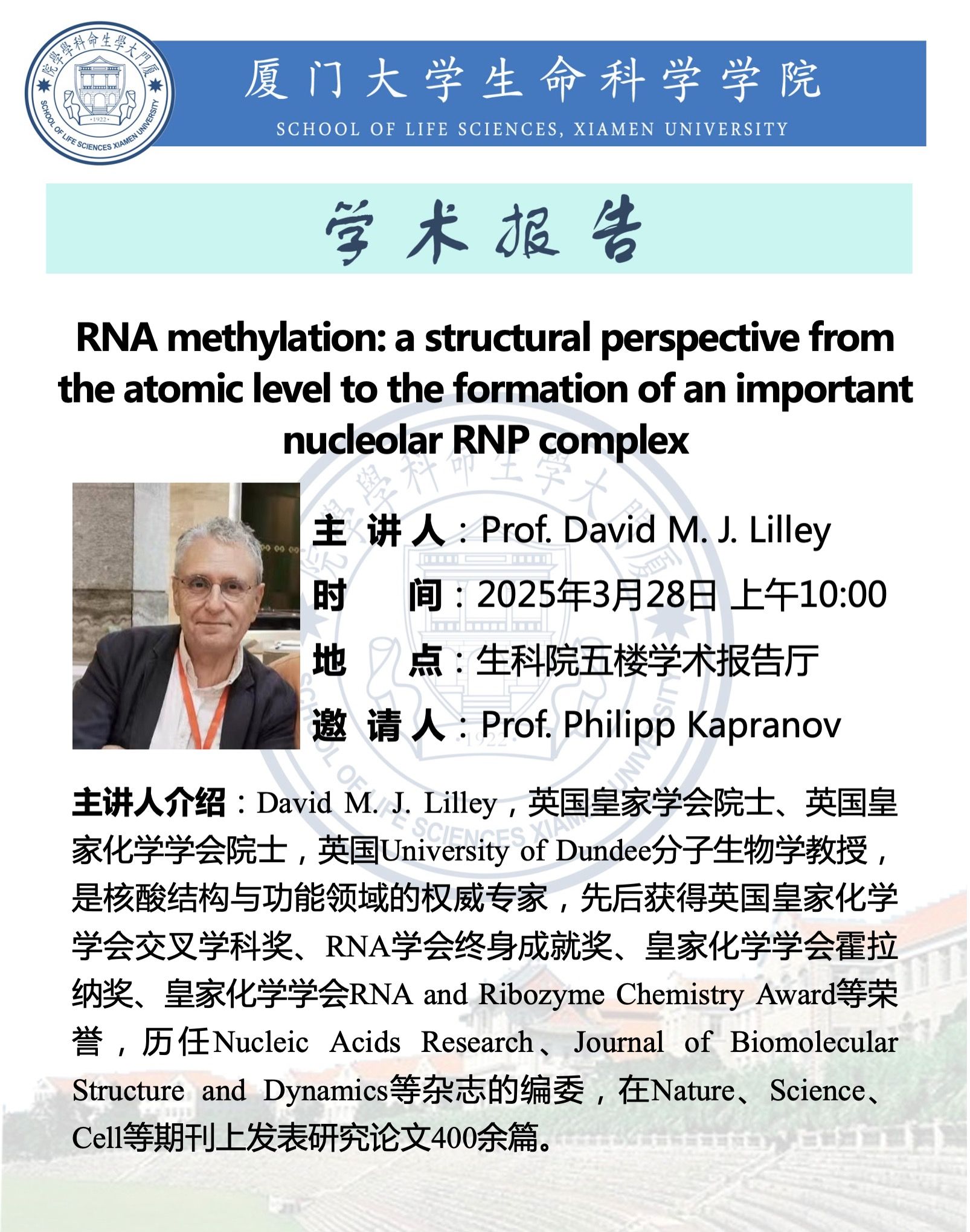 Speaker: Prof. David M. J. Lilley(The Royal Society)