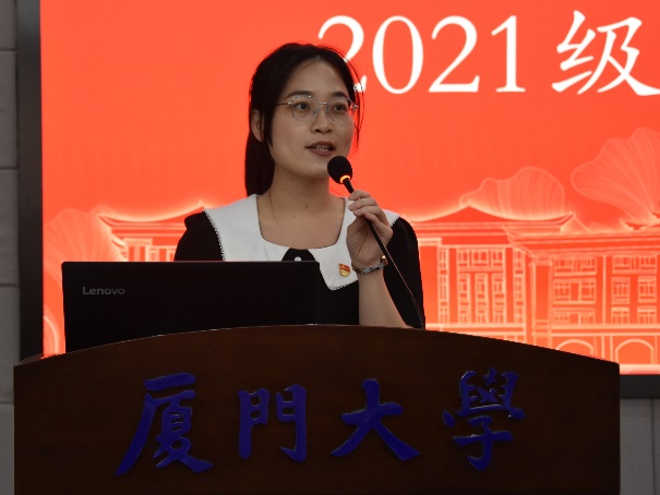 2021级博士研究生李贤和2020级硕士研究生张宜仁作为老生代表发言。李贤讲述了自己在学院的学习生活经历以及参与疫情防控工作的体会,强调了厦大公卫人应肩负的社会责任。张宜仁分享了自己初到学院的感受,并勉励新生们要尽快转变角色,努力适应环境,积极参与实践,促进全面发展。