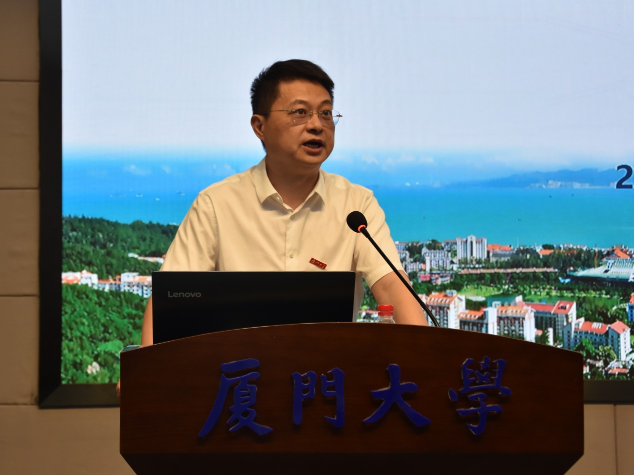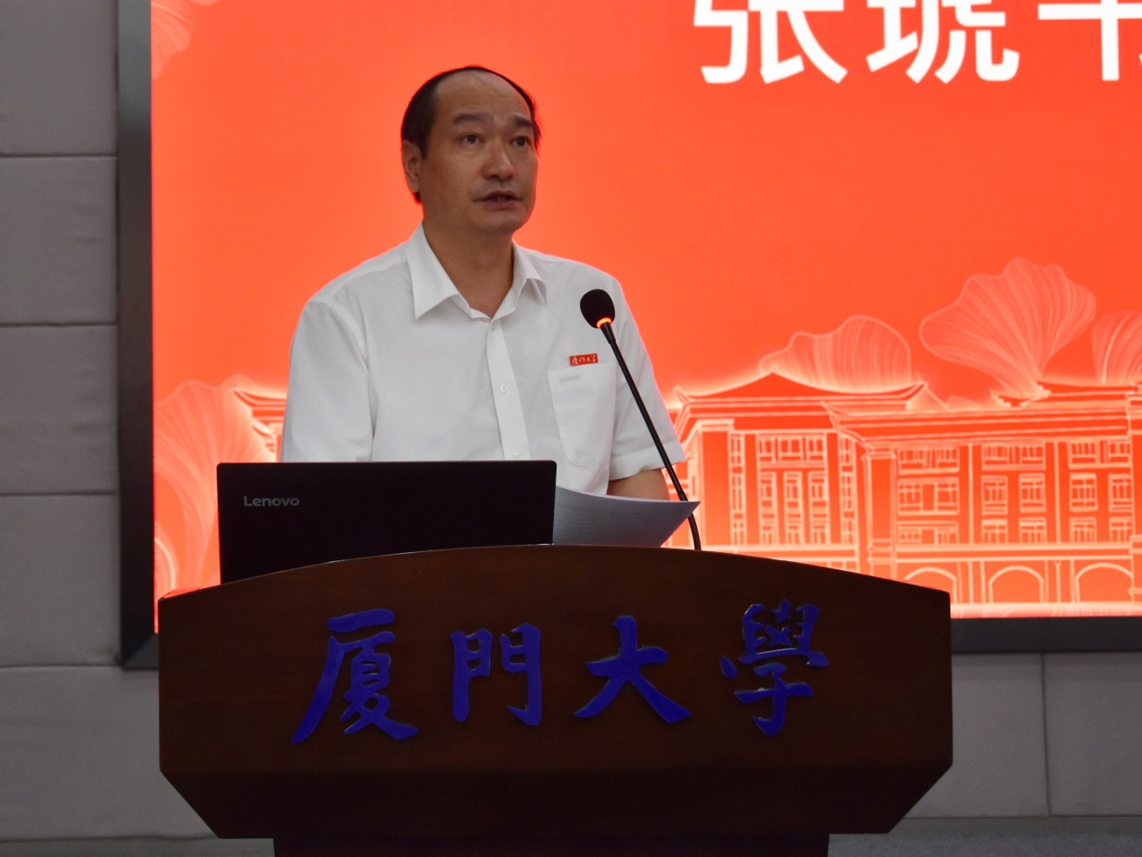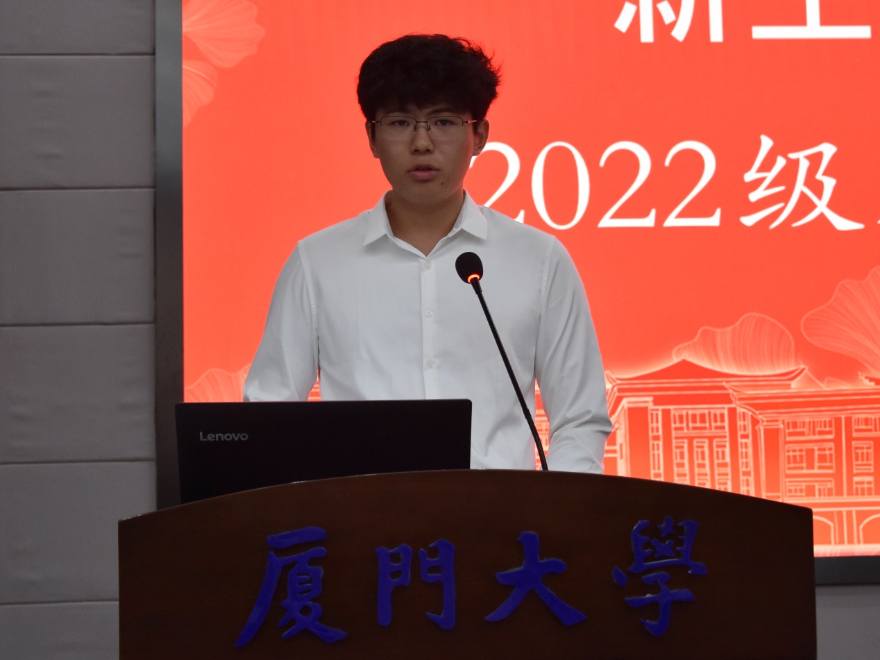 张琥代表学院向所有2022级新生的到来表示由衷的祝贺和热烈的欢迎。他向新生们阐述了厦门大学“爱国、革命、自强、科学”四种精神的内涵并介绍了学院近年来的发展情况。张琥指出,学院的发展如同国家的发展,是靠着一代又一代的年轻人不断奋斗取得的,他希望新生们能够在大学生涯中,涵养家国情怀,筑牢信仰根基,不断积淀理论知识,在专业学习和实践中努力增长才干。在党的二十大召开之际,用新时代的青春旋律,共同奏响“大鹏一日同风起,扶摇直上九万里”的青春乐章。