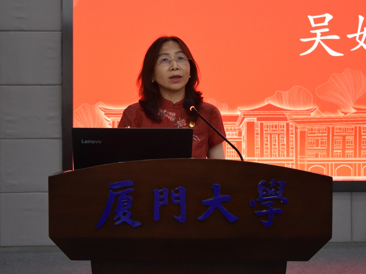 教师代表吴婷教授结合自身工作经历,围绕“刻苦”“仁爱”“幸福”三个关键词进行了分享,她期盼新生们能够以刻苦的人生态度,怀着仁爱的心,成为一个幸福的人。