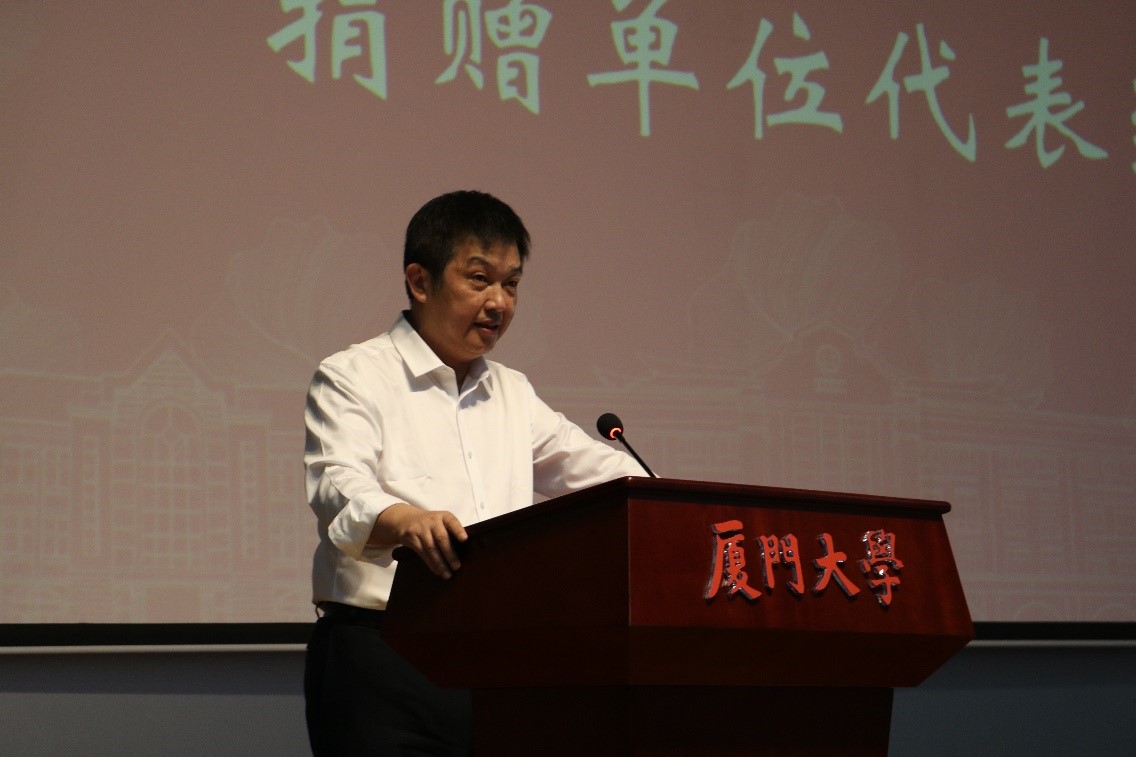 夏宁邵教授首先代表“曾定奖教奖学金”捐赠人、万泰生物董事长邱子欣致辞,他指出,学院的快速发展离不开万泰生物的支持,双方在短短十余年间成功合作研发并转化上市了全球首个戊肝疫苗、首个国产宫颈癌疫苗、全球首个新冠总抗体检测试剂等创新产品,成为国家校企产学研合作的典范。夏教授还提到邱先生的父亲——曾定教授对自己的提携和帮助,邱先生承其父志,捐资兴学,这便是“曾定奖教奖学金”的来源。最后,他代表邱先生祝学院在各位老师和同学的共同奋斗下,取得更大更好的进步。
