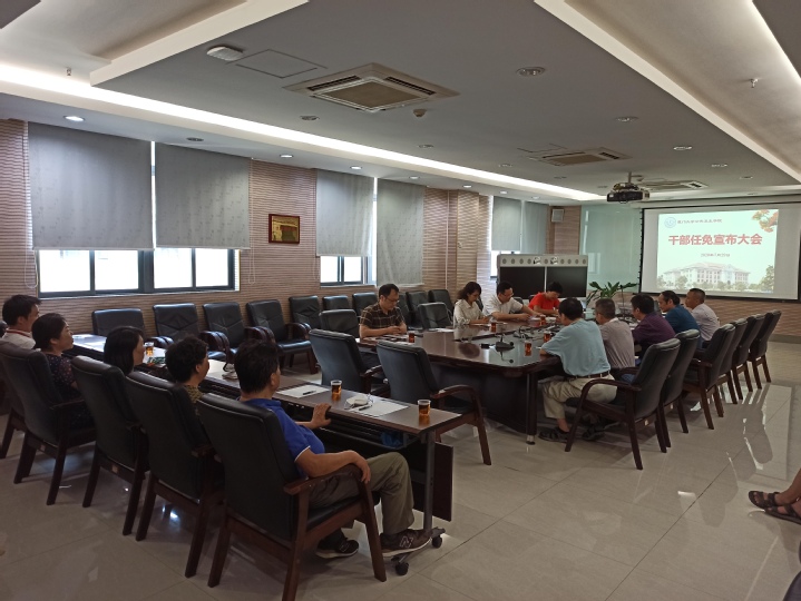 7月29日中午,公共卫生学院干部任免宣布大会在椭圆楼303会议室召开。校党委常委、组织部部长孙理同志在会上宣读了校党委的任免决定:庄曦同志任中共厦门大学公共卫生学院委员会委员、副书记,黄兆君同志不再担任中共厦门大学公共卫生学院委员会委员、副书记职务。学院领导班子成员、党委委员、系/中心/平台负责人、科级以上干部及全体辅导员参加了会议。