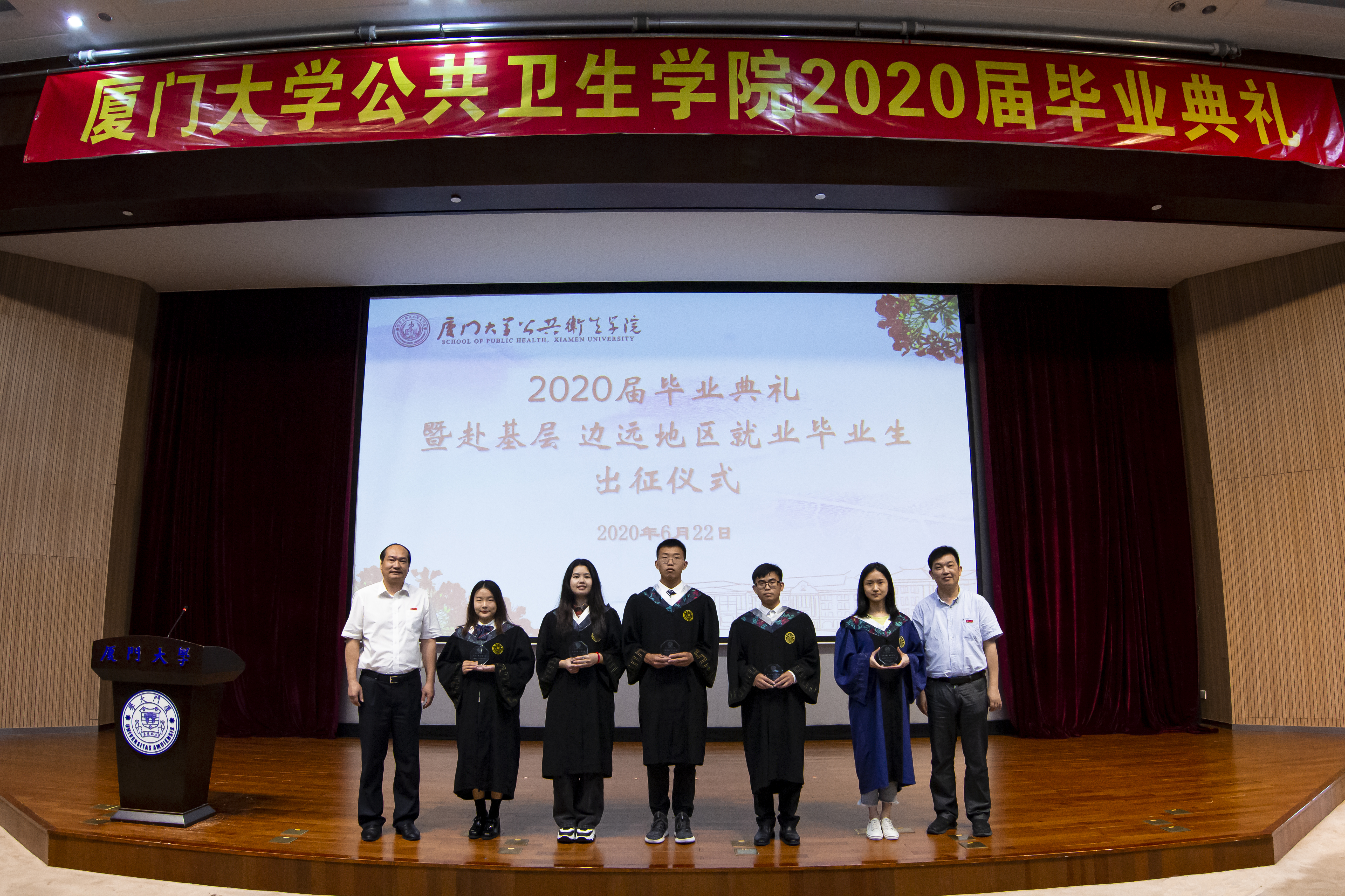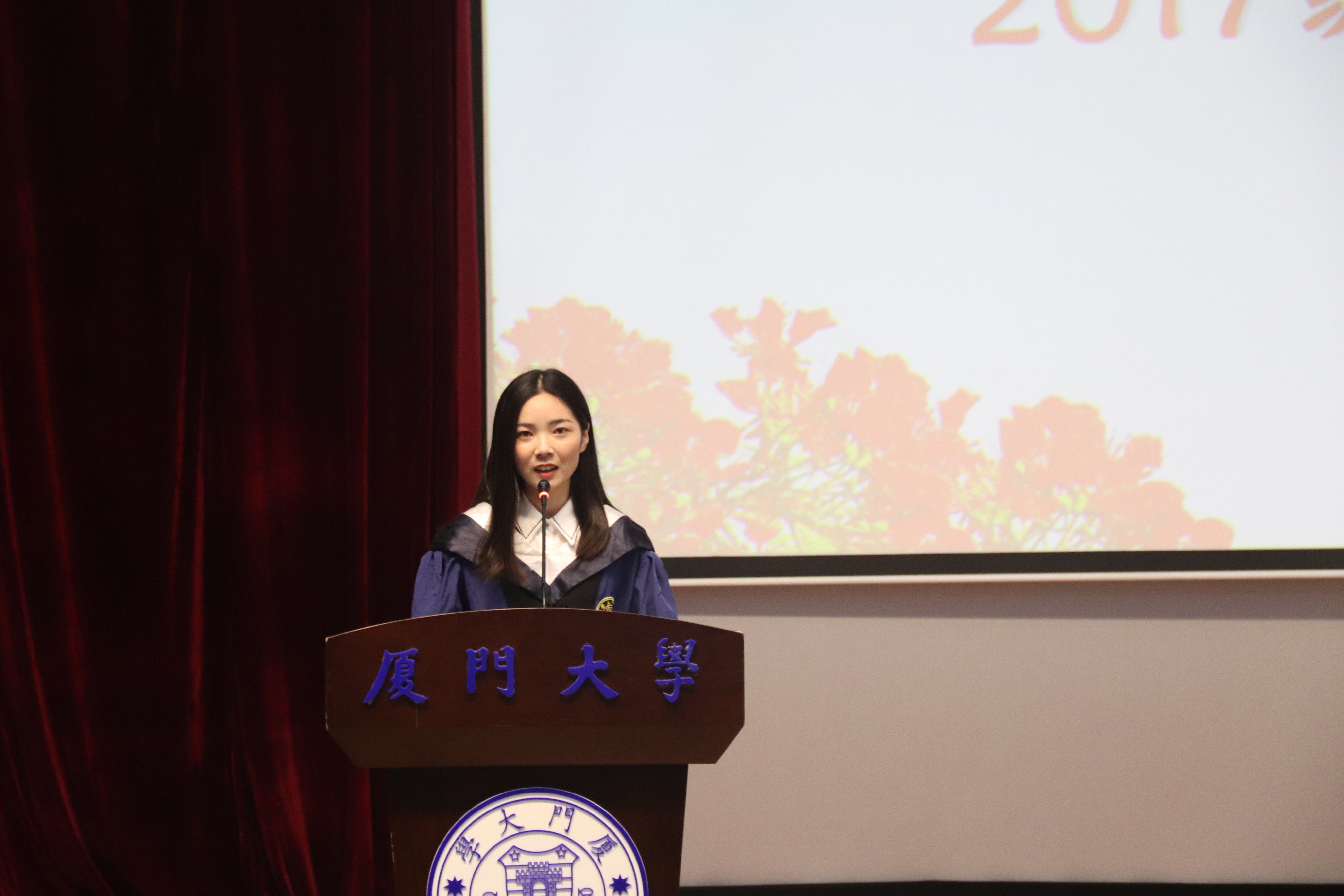 2017级研究生余小娟和赴基层、边远地区工作毕业生代表2016级本科生林文珍同学分享在校学习期间的收获与体会,感恩学院的用心培养和老师的悉心指导,并将牢记“和谐、博爱、务实、创新”的院训精神,用实际行动践行厦大公卫人的责任与担当。