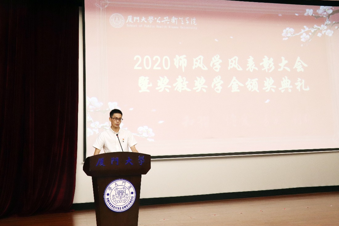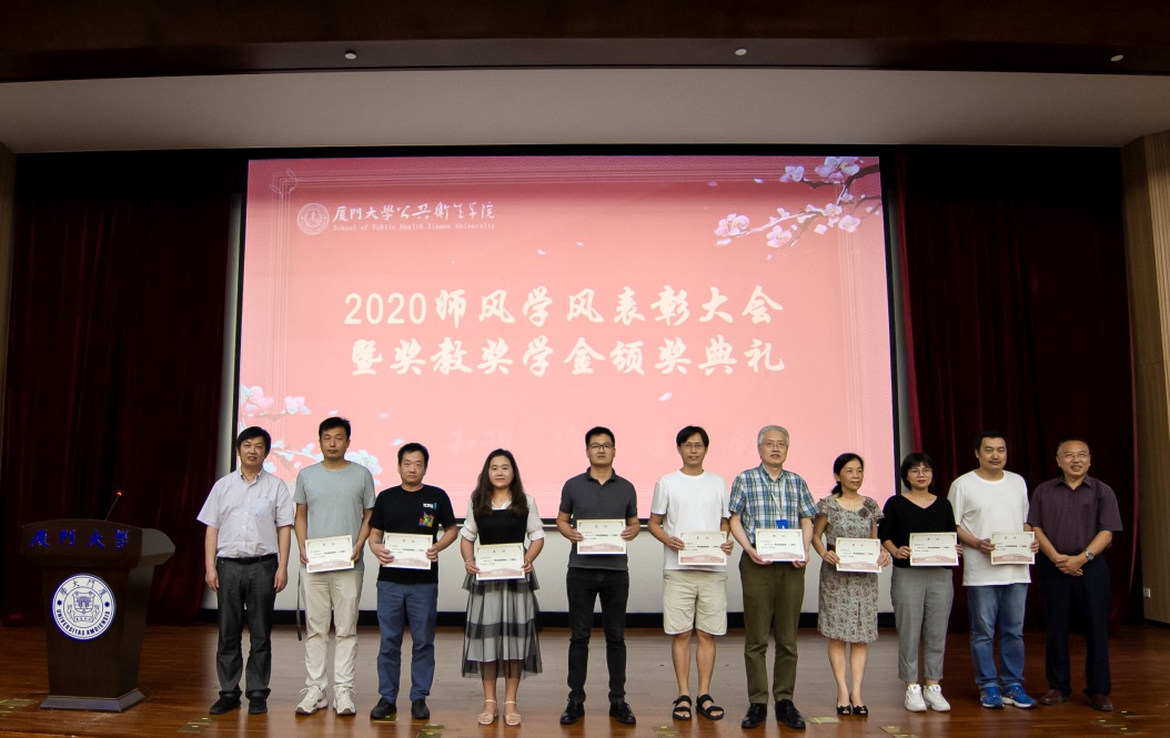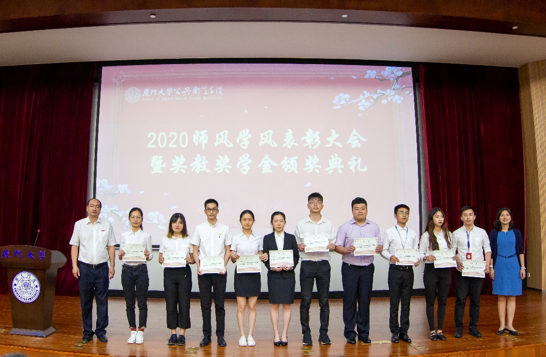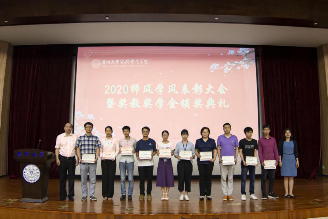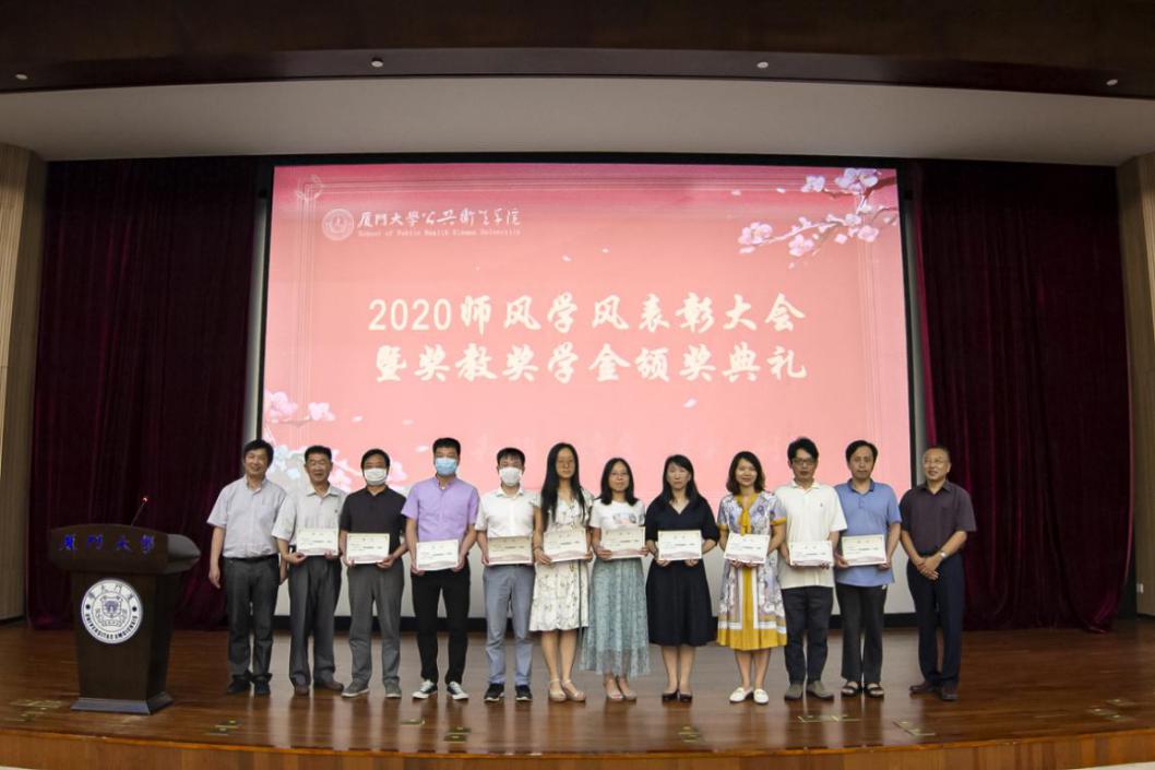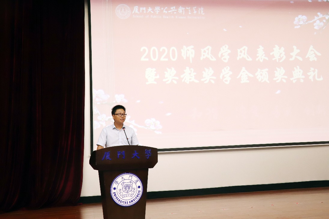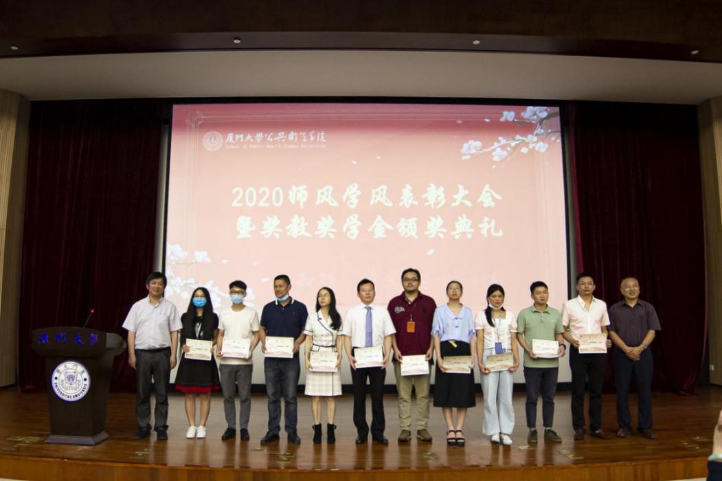 为建设良好的师风学风,表彰先进典型,凝聚榜样力量,6月6日下午,学院2020年师风学风表彰大会暨奖教奖学金颁奖典礼在翔安校区图书馆大报告厅举行。厦门万泰沧海生物技术有限公司副总经理李世成、广州万孚生物技术股份有限公司高级副总裁康可人,实习实践基地单位代表和获奖代表及学院师生参加大会。大会由学院党委副书记黄兆君主持。