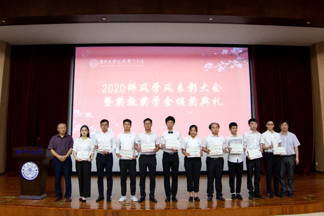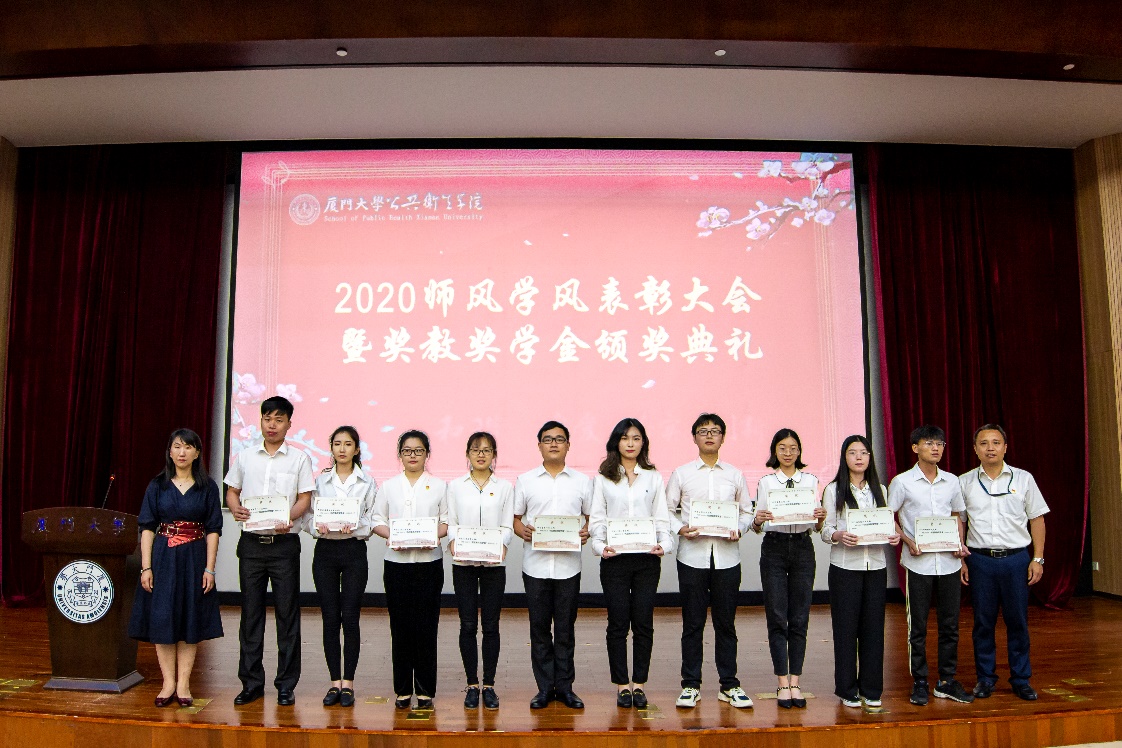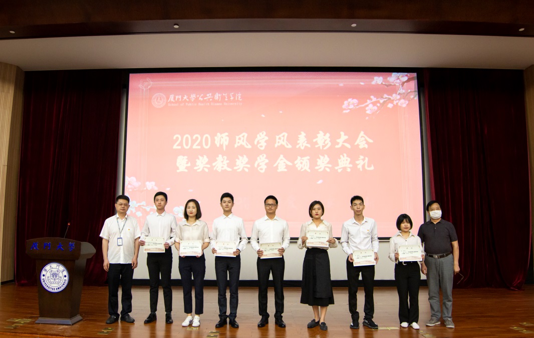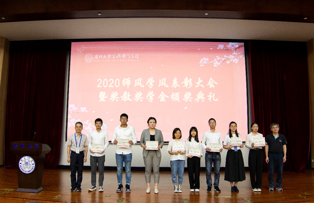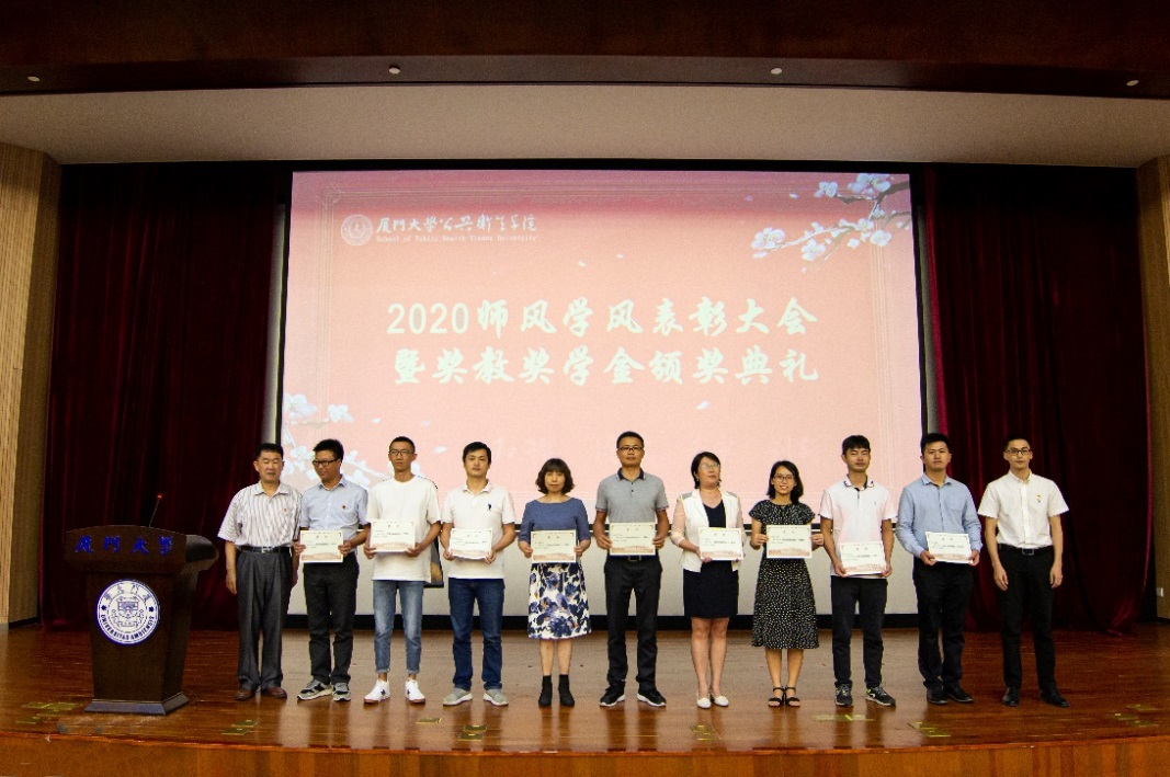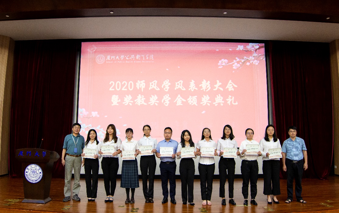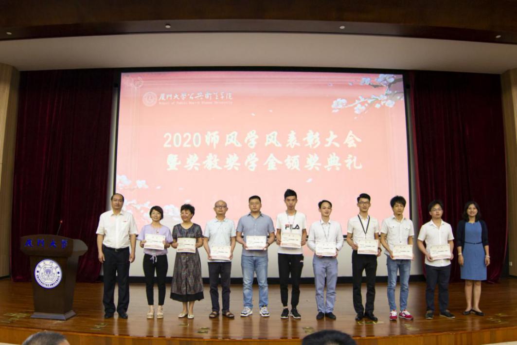 为建设良好的师风学风,表彰先进典型,凝聚榜样力量,6月6日下午,学院2020年师风学风表彰大会暨奖教奖学金颁奖典礼在翔安校区图书馆大报告厅举行。厦门万泰沧海生物技术有限公司副总经理李世成、广州万孚生物技术股份有限公司高级副总裁康可人,实习实践基地单位代表和获奖代表及学院师生参加大会。大会由学院党委副书记黄兆君主持。