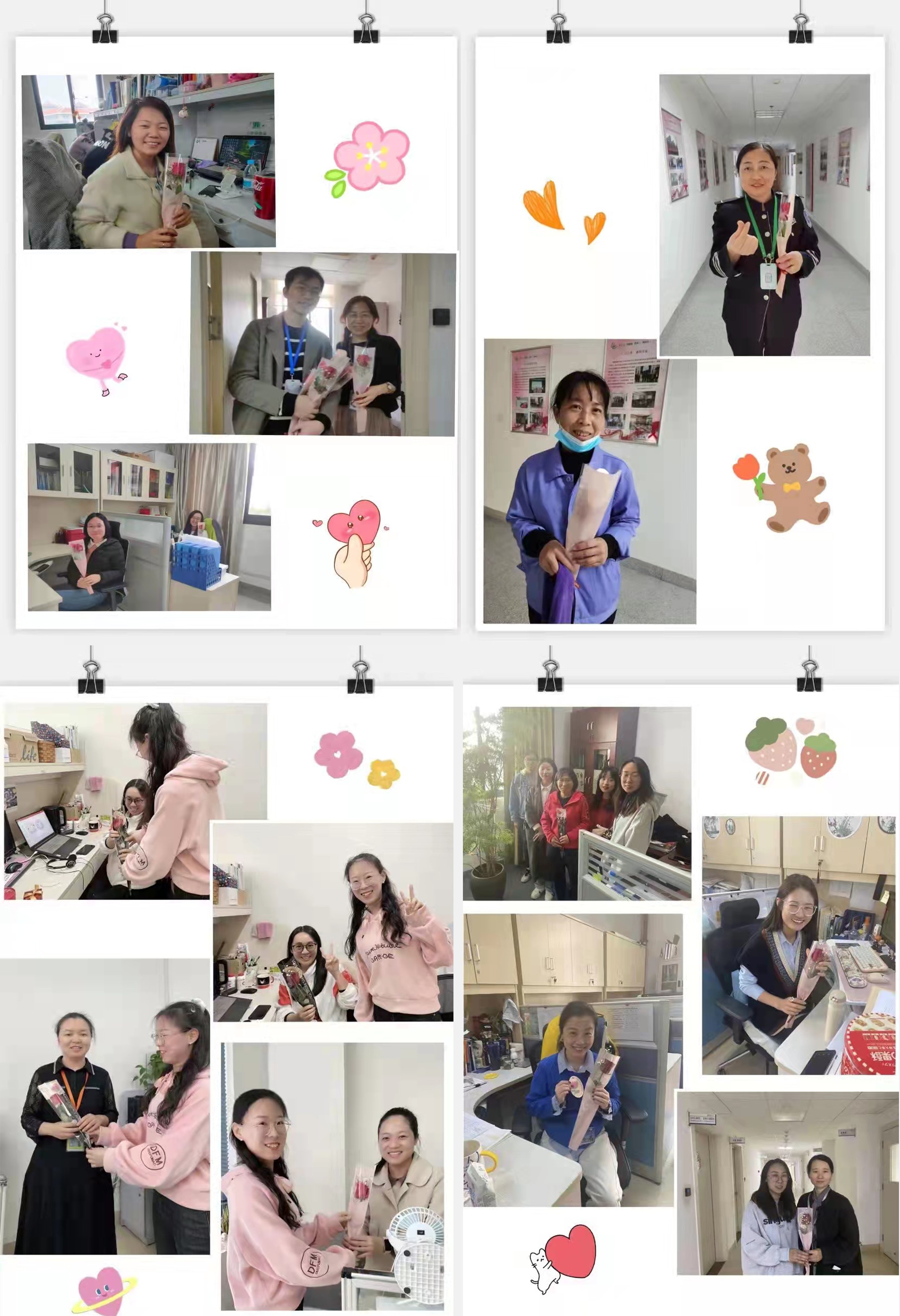 学生为老师们送上一朵朵美丽的鲜花并感谢她们的辛苦付出。老师们手捧鲜花,脸上洋溢着幸福的笑容,整个学院充满了健康、和谐、积极、向上的节日氛围。