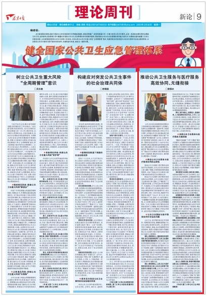 公共卫生体系是疫情防控的预防关口和疫情防控治理的前端环节,是保障人民群众生命健康的第一道防护网。当前新型冠状病毒肺炎疫情是重大突发公共卫生事件,对我国公共卫生体系提出重大挑战。而疫情防控中暴露的“医防分离”“防治断裂”等问题受到广泛关注,长期存在的“医防裂痕”亟须弥补。2020年3月,最新一期《求是》杂志发表了习近平总书记的重要文章《全面提高依法防控依法治理能力,健全国家公共卫生应急管理体系》,提及要“健全国家公共卫生应急管理体系”“推动公共卫生服务与医疗服务高效协同、无缝衔接,健全防治结合、联防联控、群防群治工作机制”。