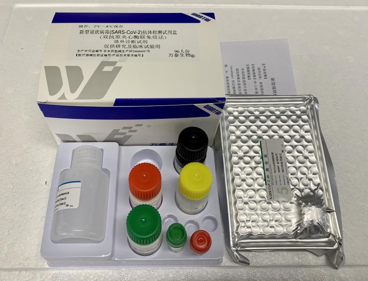 2月14日,由厦门大学、深圳市第三人民医院和养生堂旗下北京万泰生物药业股份有限公司共同研发的新冠病毒抗体检测试剂盒(双抗原夹心酶联免疫法)经临床验证,173名新冠肺炎确诊患者中93.1%抗体检测阳性,而33名健康人中无一阳性,显示出良好的敏感性和特异性。这是首个经大样本临床验证的新冠病毒总抗体检测试剂。该试剂能同时检出包括IgM和IgG在内的全部新冠特异性抗体,具有更高的灵敏度,所采用的双抗原夹心法能够更好地保障特异性。抗体检测试剂的另一大突出优点是检测速度快,两名检测人员12小时即可完成1500份标本的检出。