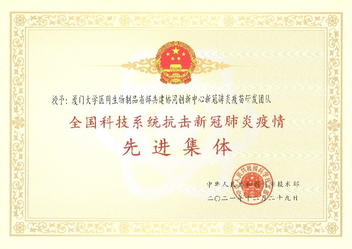 日前,为表彰先进,大力弘扬伟大抗疫精神和科学家精神,充分激发广大科技工作者的责任感、使命感和荣誉感,科技部发布《关于表彰全国科技系统抗击新冠肺炎疫情先进集体和先进个人的决定》(国科发奖〔2022〕18号)。我院医用生物制品省部共建协同创新中心新冠肺炎疫苗研发团队荣获“全国科技系统抗击新冠肺炎疫情先进集体”称号,吴婷教授和陈田木副教授荣获“全国科技系统抗击新冠肺炎疫情先进个人”称号。