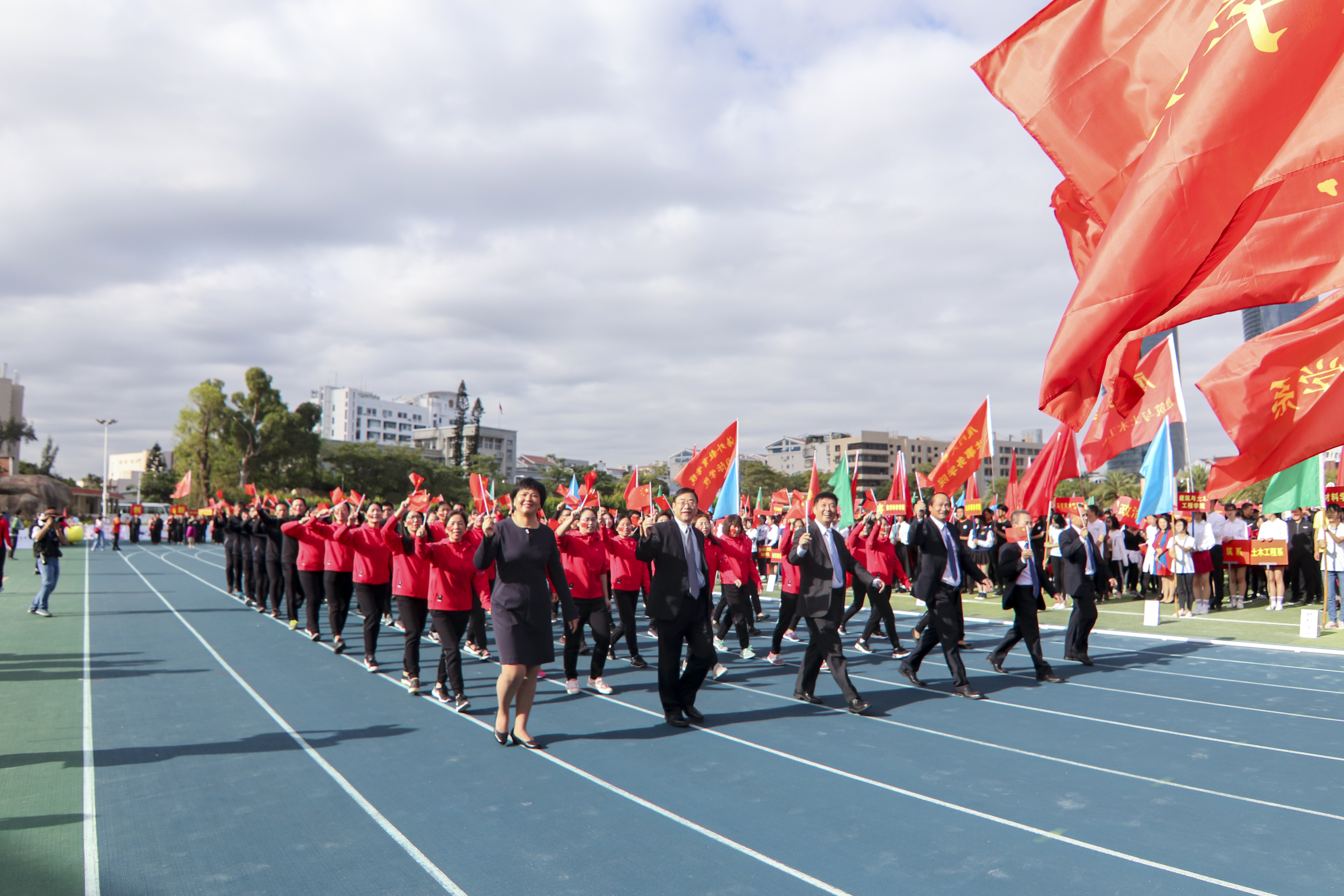我院七十多名教职工组成的入场方阵,展现良好的精神风貌。