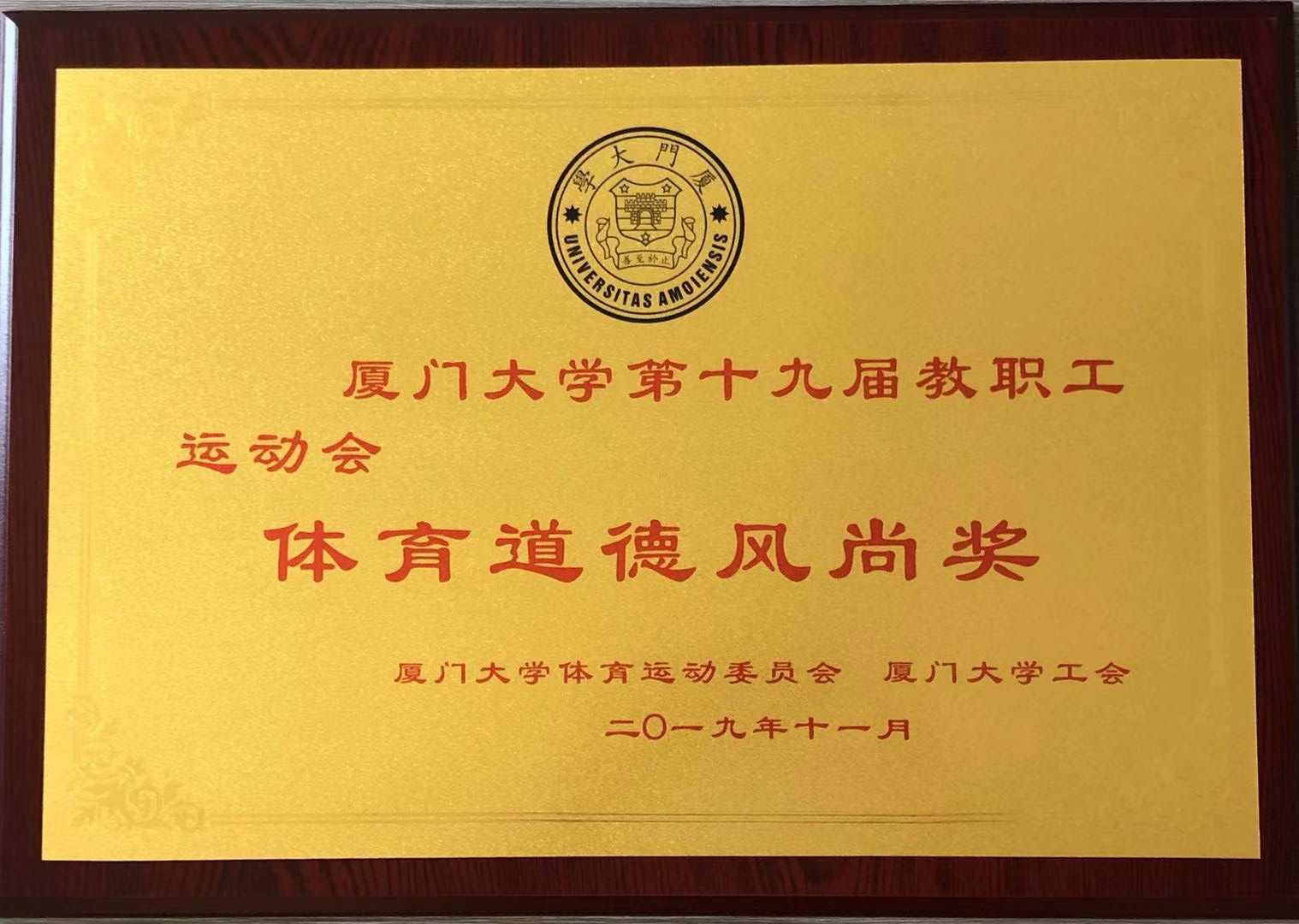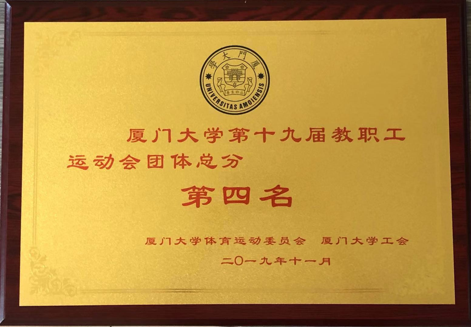 11月1-2日,厦门大学第19届教职工运动会在思明校区演武田径场举行。学院教职工代表队,发扬不畏强手、勇于拼搏、敢于争先的精神,最终在全校37支代表队中脱颖而出,以94分的好成绩位列团体总分第四名并荣膺“道德风尚奖”,创造了在全校竞技运动上的最好成绩。