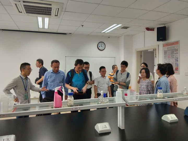 蒋义国院长一行包括:实验教学中心主任吴建军,实验教学中心秘书陈彧,化学致癌研究所秘书凌艺辉,实验教学中心教师易艳妮、方磊,科研平台教师李勋、高洁。