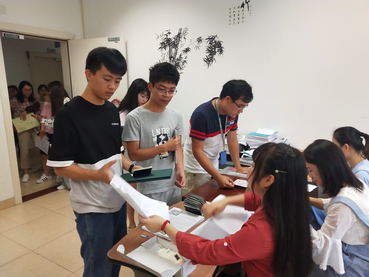 我院2019级研究生的迎新工作则在学院曾宪梓楼进行,因大多数研究新生利用暑期的时间提前来到课题组学习,已经对学校、学院熟门熟路了。10日上午9:00,94名新同学陆续前来报到注册,在提交学籍材料,领取学生卡、学生证等新生材料后,便正式开启了属于他们的难忘的研究生生涯。