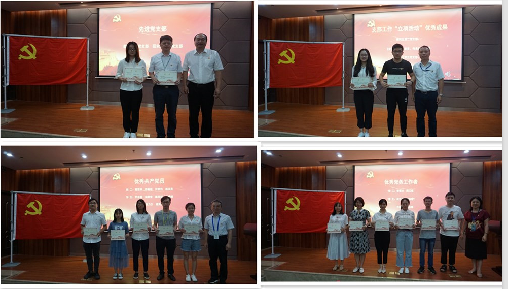院党委委员依次为受表彰的先进集体和个人颁发奖状,研究生第六党支部郑晗盈、教工第三党支部郑美铃、教工第一党支部曾雁冰作为获奖代表发言。随后,全院党员重温入党誓词,在党旗下庄严宣誓,承诺志愿为党的事业奋斗终身。