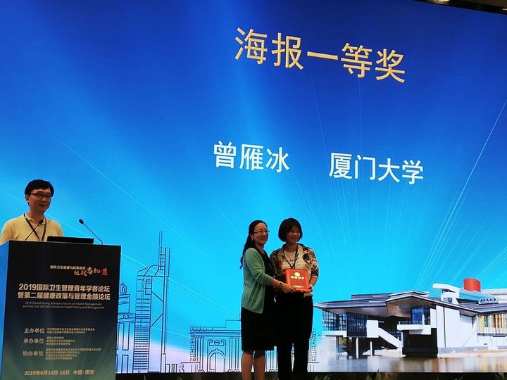 由中华预防医学会卫生事业管理分会青年委员会、中国卫生政策与管理学会(CHPAMS)联合主办的2019国际卫生管理青年学者论坛暨第二届健康政策与管理金陵论坛于6月14-16日在南京举行,我院卫生经济与政策研究中心曾雁冰副教授的论文“中国贫困老年人卫生服务需求与利用研究”入选优秀海报展示,并受邀在论坛做口头报告,受到与会专家广泛好评,在会议现场投票中荣获大会优秀海报一等奖与最佳口头汇报奖。