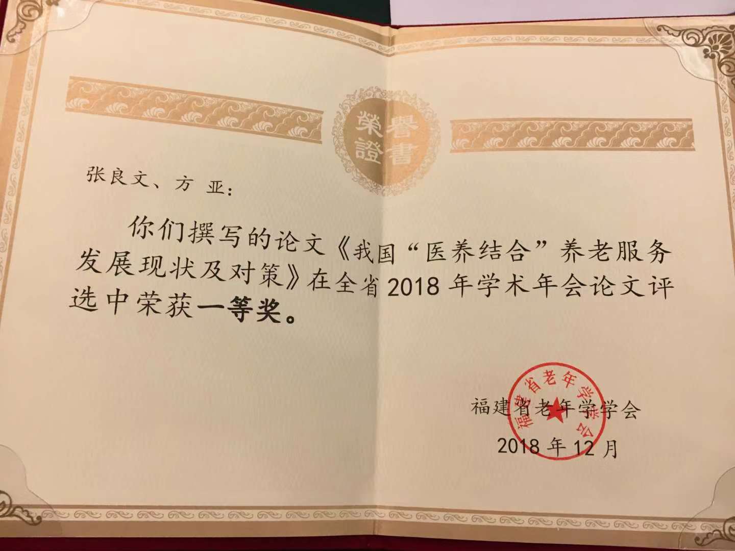 我院方亚教授、张良文博士应邀参会并做关于“我国医养结合养老服务发展现况及对策”的主题发言,围绕“养老服务供给侧结构性改革”这一会议主题,详细总结了国家“医养结合”发展战略的现况及对策,引起与会人员的广泛讨论。此外,由方亚、张良文撰写的《我国医养结合养老服务发展现况及对策》一文在全省2018学术年会论文评选中荣获一等奖。