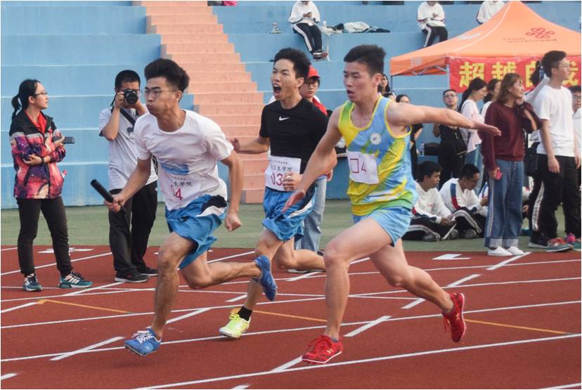 在团体项目中,我院研究生队伍勇夺男子接力4*100米和4*400米两项桂冠,女子接力赛也巾帼不让须眉,取得了4*100米、4*400米两个第三名的好成绩。此外,30*10袋鼠跳混合接力和30*60混合迎面接力赛中运动员们配合默契,获得第五名。