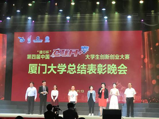 11月13日晚,第四届中国“互联网+”大学生创新创业大赛厦门大学总结表彰晚会在建南大会堂举行,回顾大赛筹办工作历程,总结工作经验,表彰先进。我院获得参赛组织先进单位,学院党委副书记黄兆君上台领奖并作为先进单位代表接受采访。