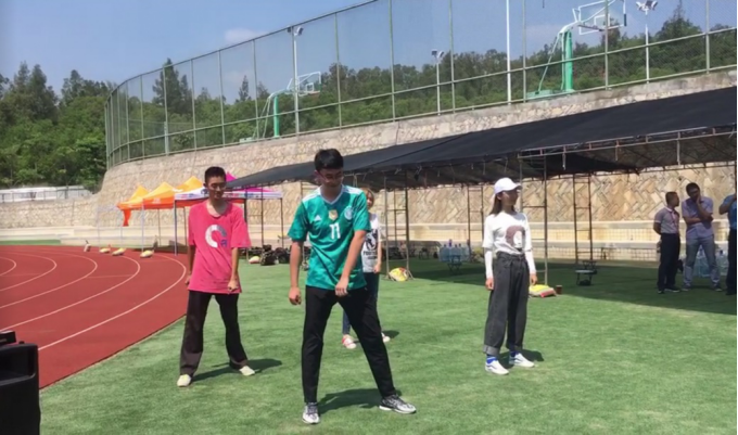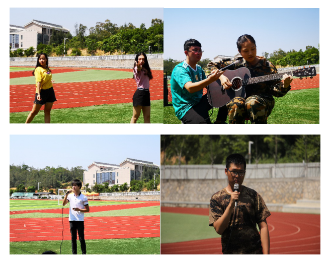 首先,校舞蹈协会的肖瑾与叶晨妍同学表演舞蹈《Me too》,在火热的骄阳下释放活力;2017级本科生黄兴成带来一曲《让我留在你身边》,用细腻的声音唱出青春;随后,新生也不甘示弱,谢昉同学吉他弹唱歌曲《滴答》,池余睿同学演绎老歌《冰雨》。最后,在18级新生的热烈掌声下,17级本科生、啦啦操队队员殷显瑞、陈雅玲、赵成君与张心怡共同表演《啦啦操》,用青春的舞步点燃激情,引来场下阵阵欢呼。