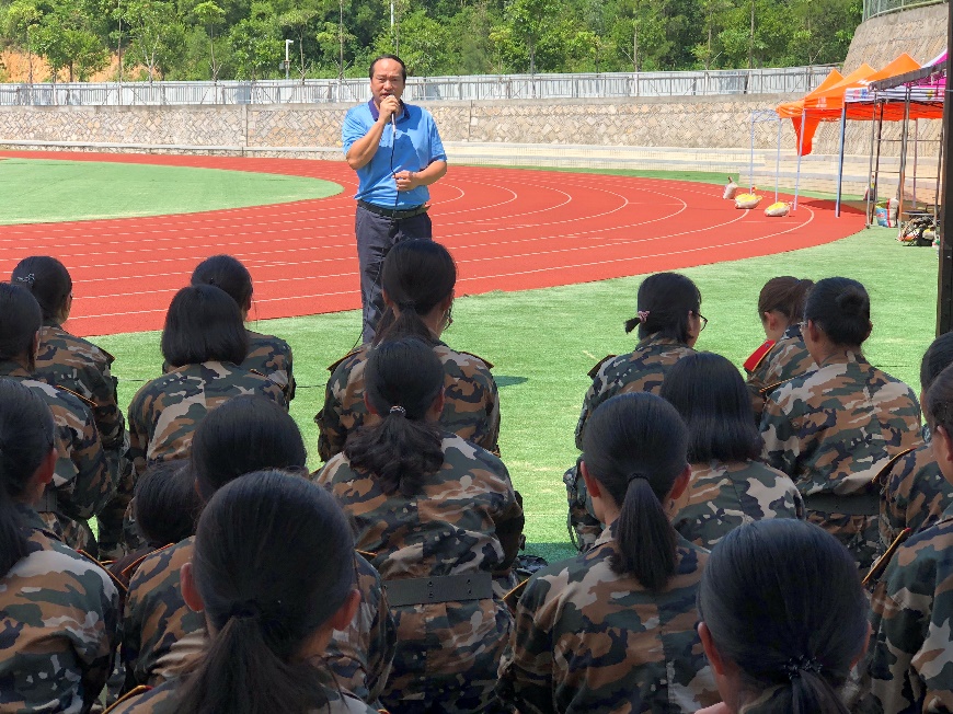 慰问开始,张琥书记代表学院讲话。他表示,军训作为新生大学的第一堂课,根本目的在于培养学生的组织纪律性、执行力,锻炼学生的意志品德。他希望,同学能够克服困难,学有所获。同学以热烈的掌声感谢书记的肯定与鼓励。