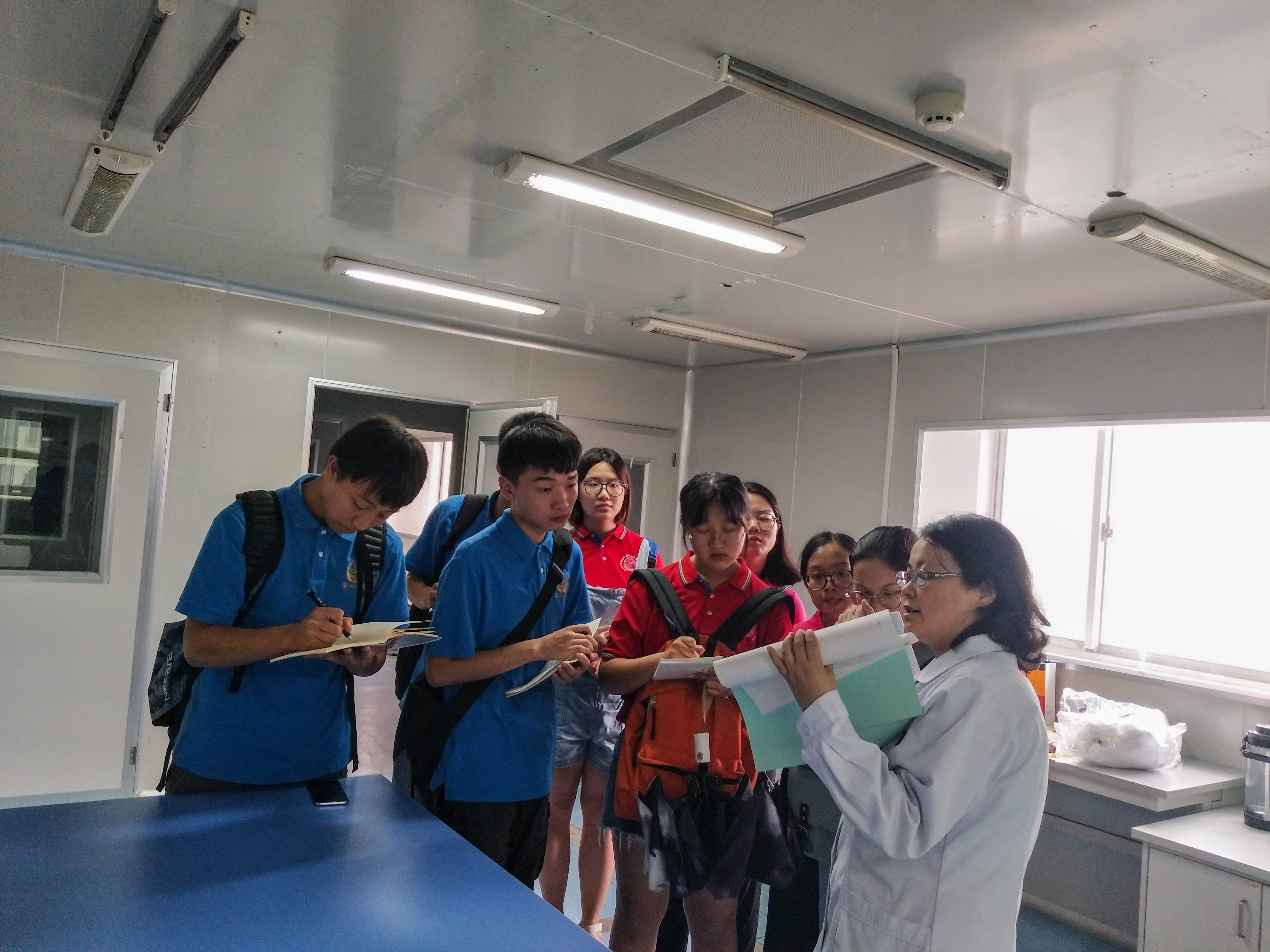 6日上午,实践队在疾控中心微生物实验室宋衍燕老师的带领下,参观了实验室,学习实验室生物安全知识,并详细介绍了不同种类的致病源的分类及处理方法、样品病毒细菌的运输方法、操作规程等方面内容,队员们深入了解到了科研在疾病防控方面所起到的作用,返校后将更加用心参加科研训练。