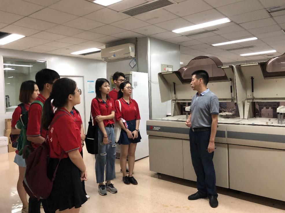2日下午,实践队来到成都中医药大学附属医院检验科,在检验科熊大迁主任的带领下参观了科室的微生物、免疫、生物化学、分子生物学等各类检测的功能区间以及检验科室的操作台等,队员们对医院检验科的工作有了更为深刻的了解,也进一步对体外诊断产业如何与临床医院的工作相结合有了更深刻的认识,并深深感受到医务工作者认真的工作态度与高度的责任感。