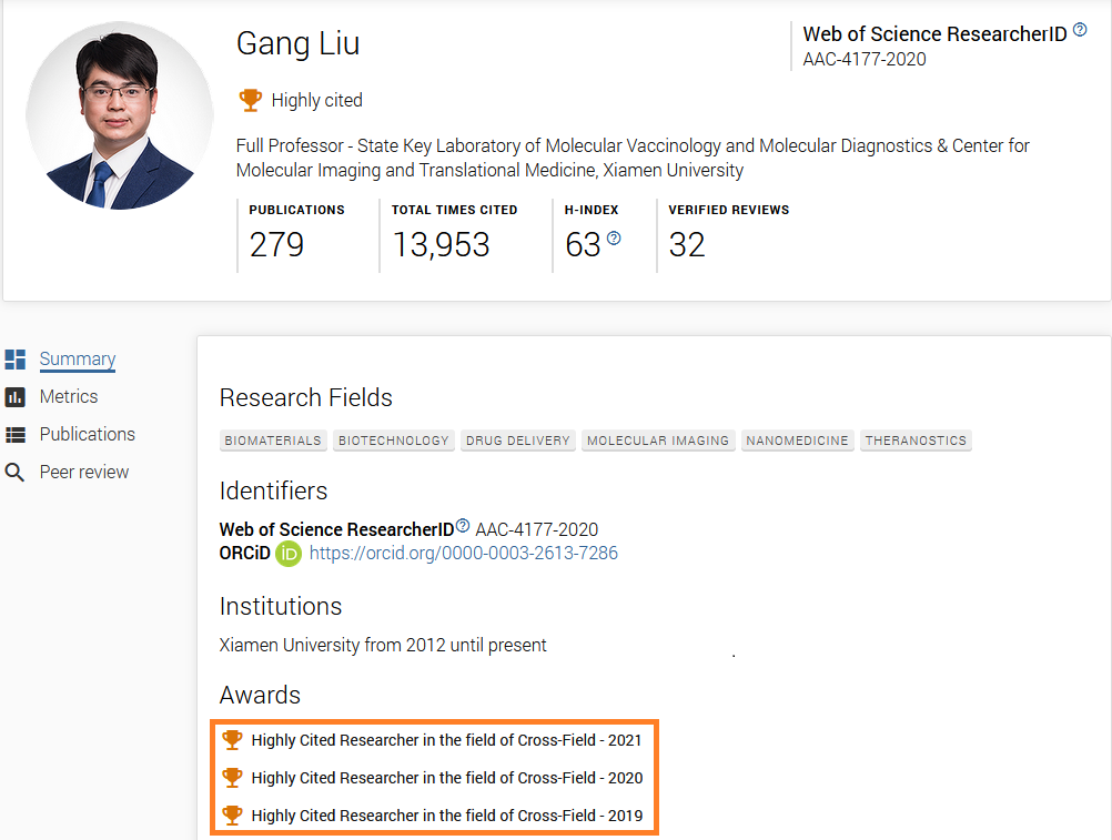 2021年11月17日,科睿唯安发布了2021年“高被引科学家”名单,我院刘刚教授再次入榜(Cross-Field),这也是刘刚教授连续第三年入榜。