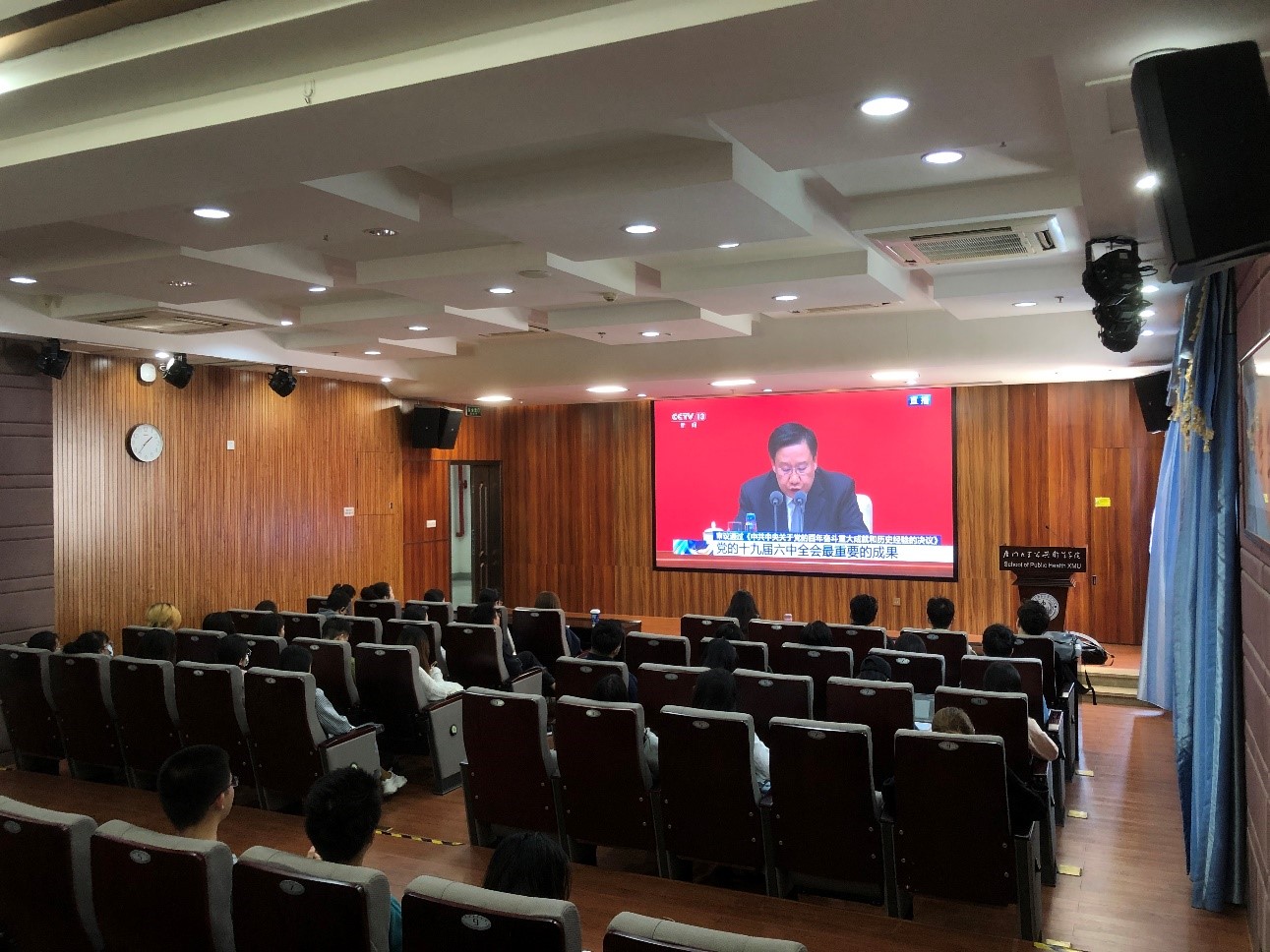 11月8日至11日,中国共产党第十九届中央委员会第六次全体会议在北京举行。为深入学习领会十九届六中全会精神,11月12日上午,公共卫生学院组织学生工作骨干于曾宪梓楼101教室集体观看学习了中共中央就党的十九届六中全会精神举行的新闻发布会,并交流分享个人学习心得体会。