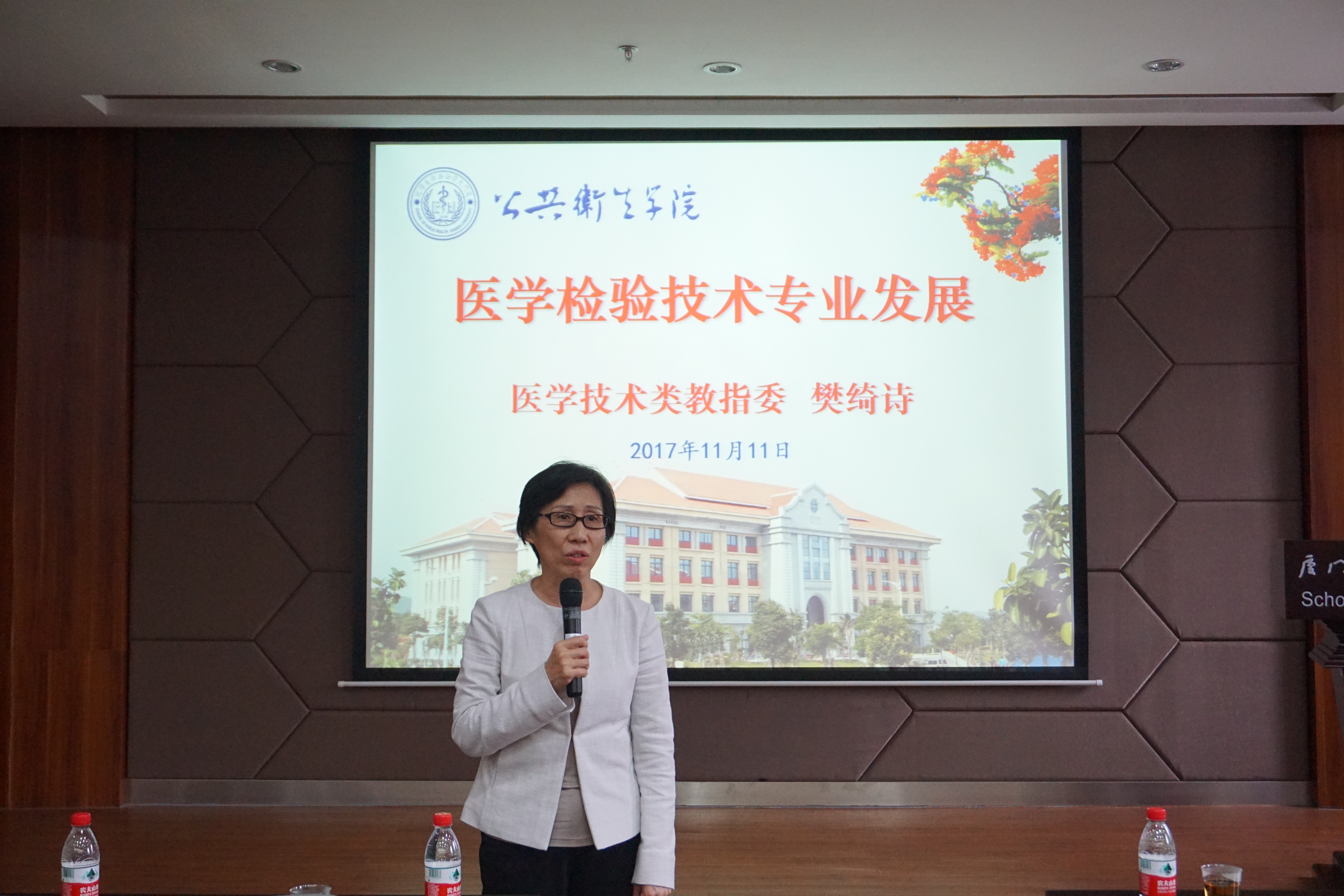 11月11-12日,由我院承办的教育部高等院校医学技术类教学指导委员会“医学检验技术专业协同创新教育研讨会”顺利召开。教指委主任委员樊绮诗教授、副主任委员尹一兵教授等专家参加了本次会议。校长助理陈光、教务处副处长陈雪芬、学院党委书记张琥、副院长张军、副书记黄兆君和副书记杨机像等出席开幕式。
