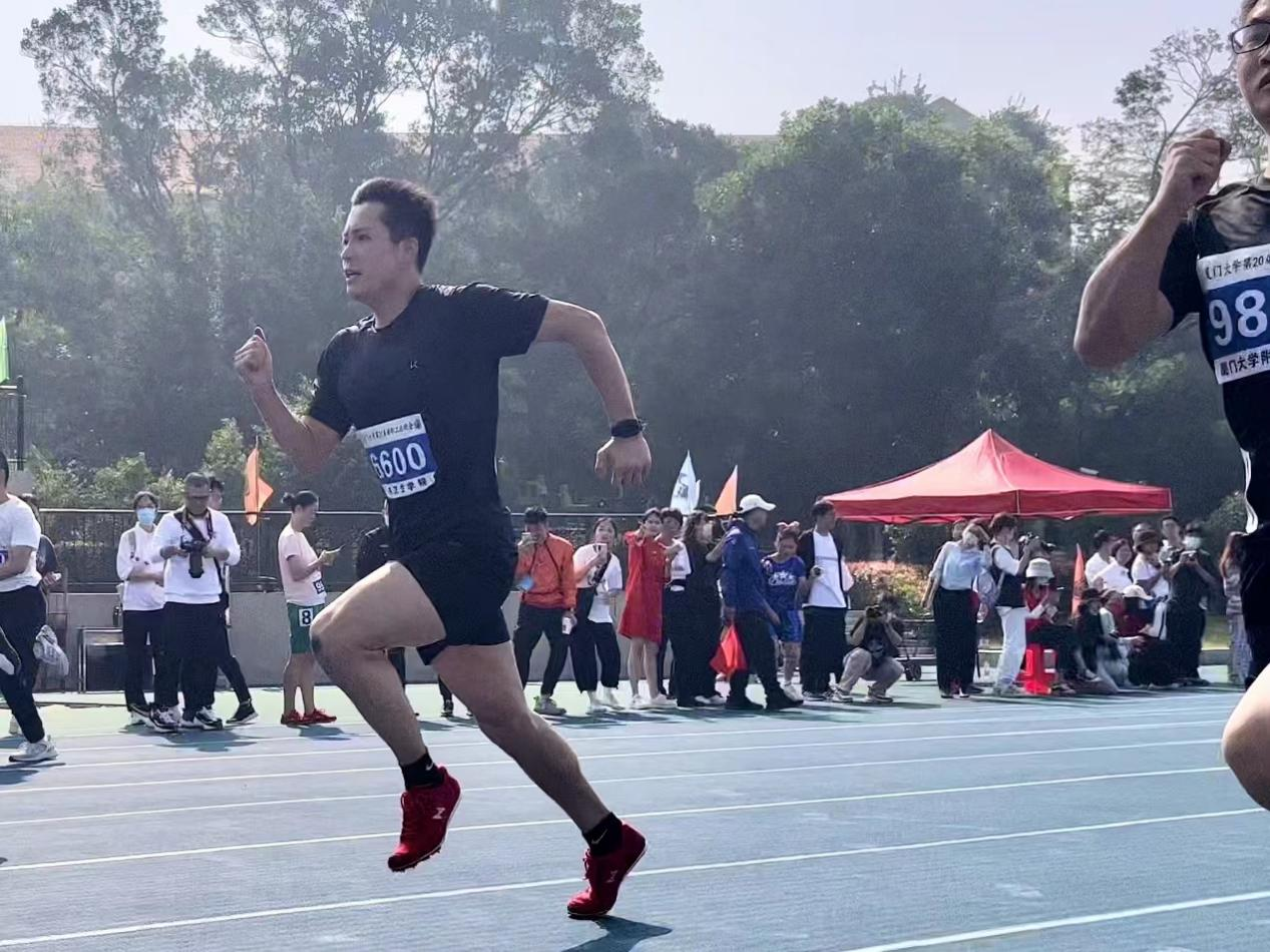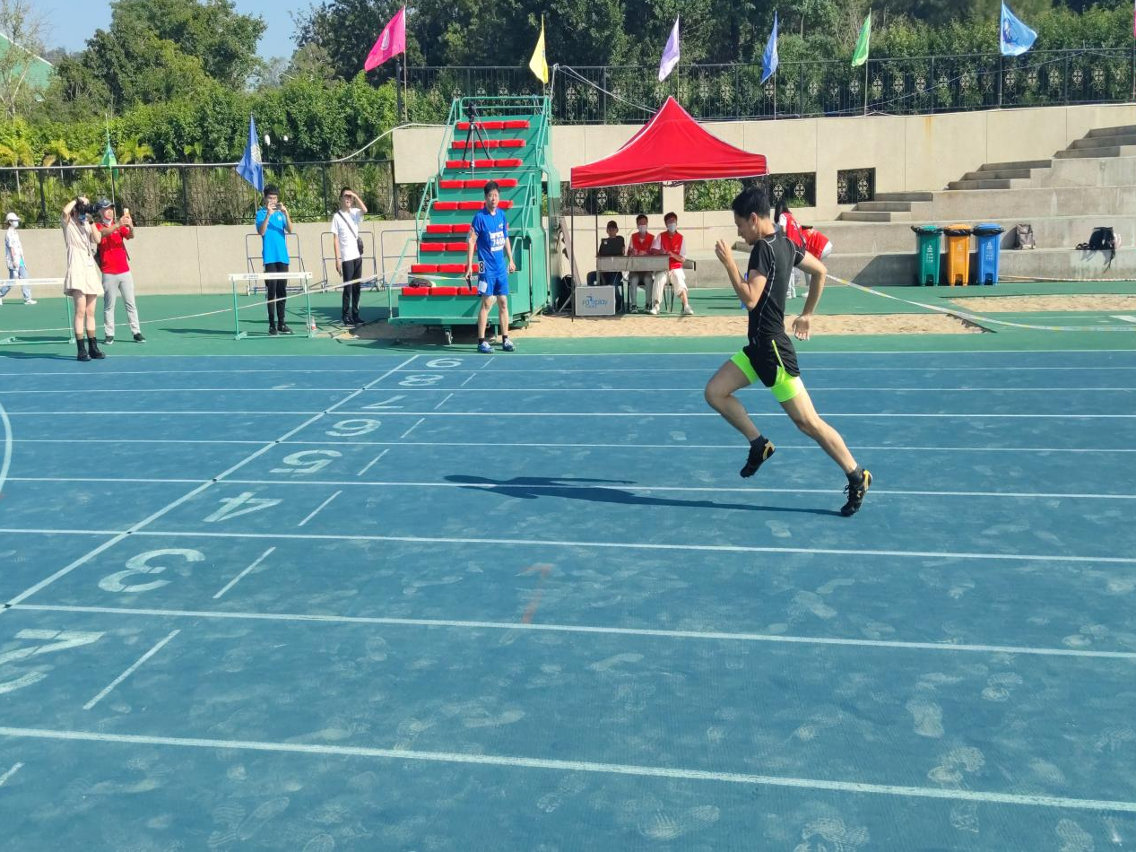 赖龙城老师参加男子青年二组100米比赛