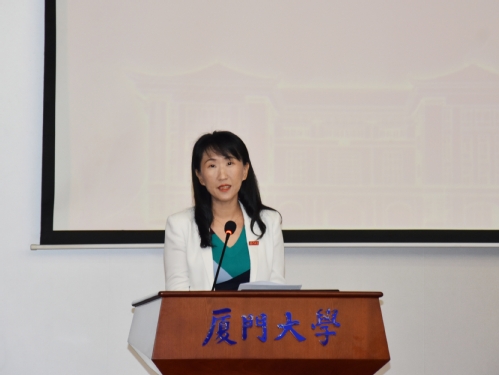预防医学系副主任赵苒副教授作为教师代表发言。她向新生们分享了自己学生前往厦门同安支援抗疫的故事,并希望新生们能与祖国同行,坚定信念,矢志奋斗,做“有志气、有骨气、有底气”的厦大公卫人。