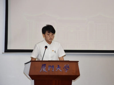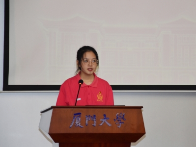 老生代表安秋颖同学讲述了自己不久前奔赴同安一线支援抗疫的经历。过程中她几度哽咽,微微颤抖的声音透露出对学院的感激和对公卫专业的热爱。她希望学弟学妹们能够珍惜在厦园学习的时光,用实际行动肩负起厦大公卫人的责任和使命。