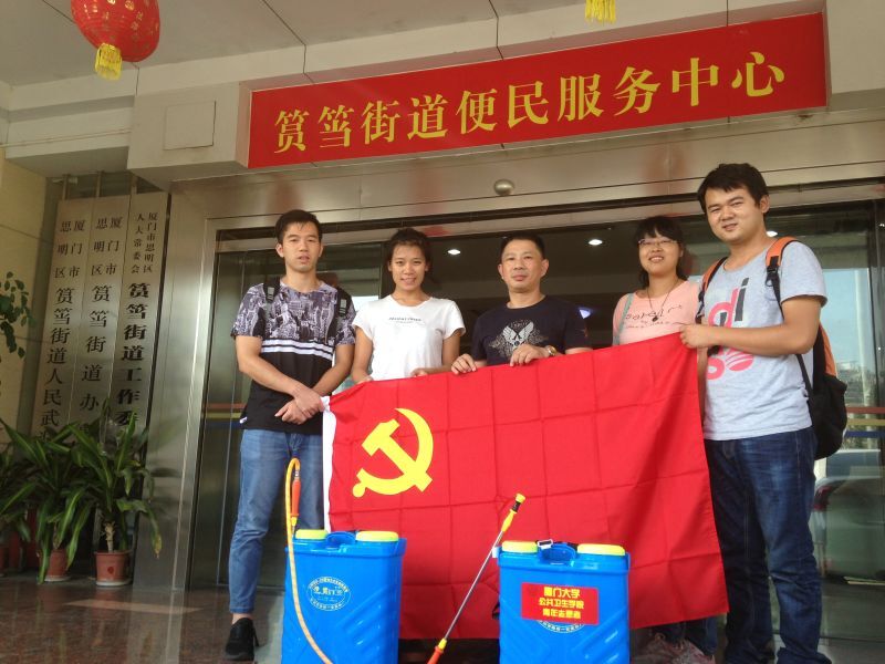 2016年9月15日超强台风“莫兰蒂”登陆厦门,一夜之间,整个厦门一片狼藉,为预防灾后传染病的发生和传播。9月19日,厦门大学公共卫生学院2012级本科生党支部践行“两学一做”学习教育,组建“爱无疆”公共卫生防疫服务队到思明区开展消杀志愿服务和防疫宣传活动,本次活动得到了厦门市思明区疾病与预防控制中心的大力支持。