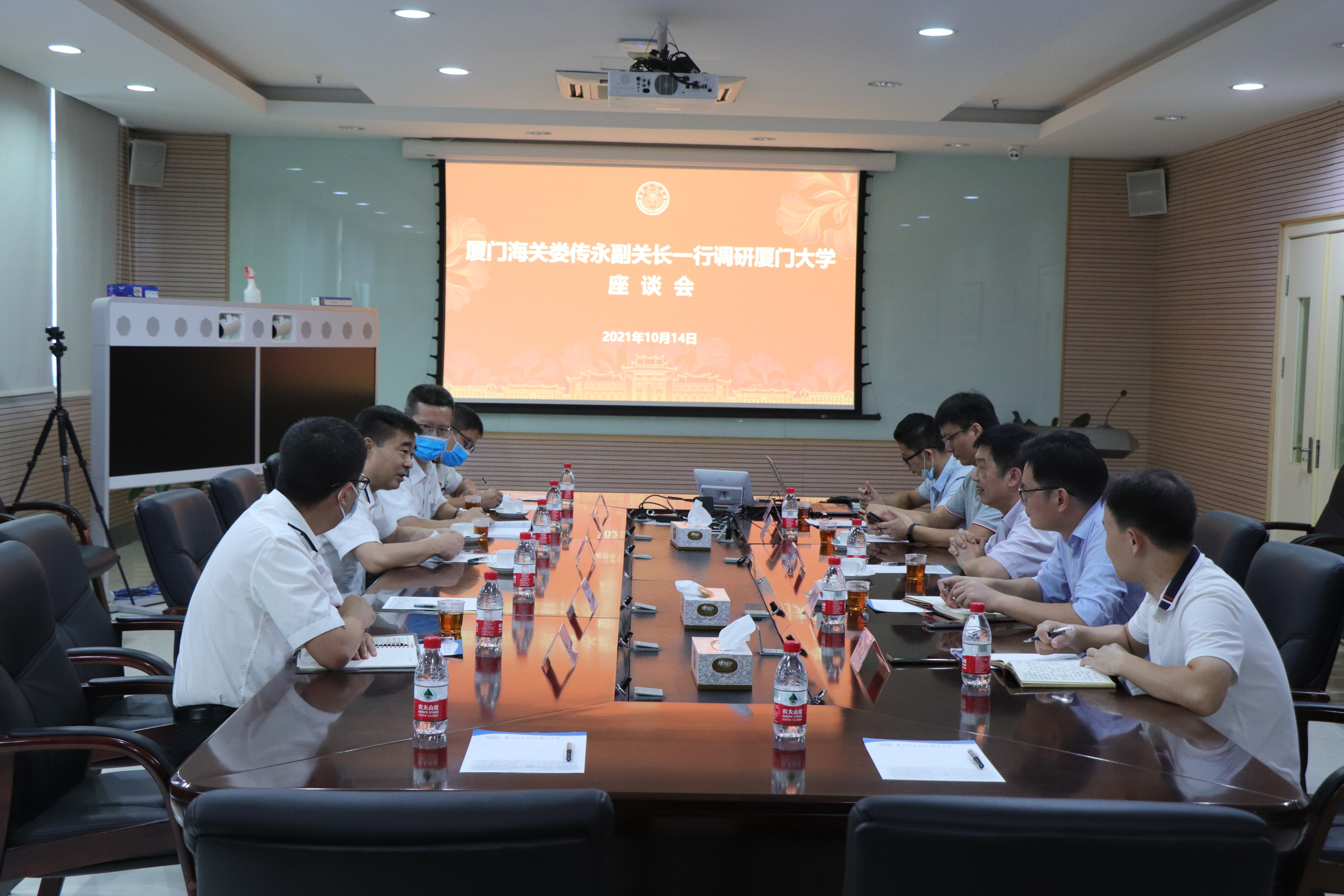 厦门海关卫生检疫处处长杨清双、科长陈进文,动植物检疫处副科长魏鹏,学院党委副书记王晟、陈毅歆副教授等参加座谈。