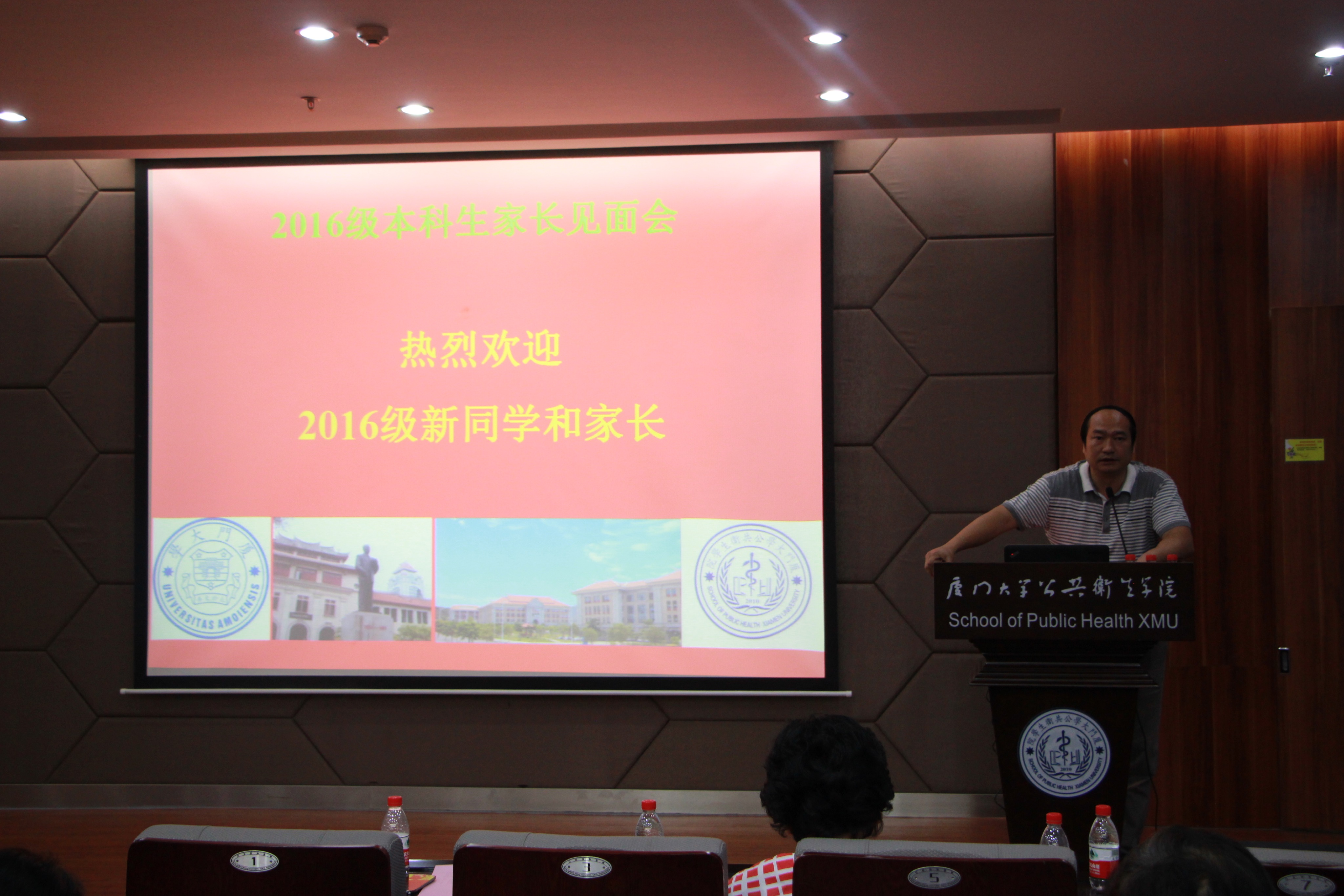 2016年8月24日下午15:00,公共卫生学院2016级本科新生家长会于曾宪梓楼101顺利举办。参加本次会议的有党委书记张琥,副院长张军、林忠宁,党委副书记黄兆君,团委副书记沈鑫,辅导员赵煜及2016级新生家长,会议由党委副书记杨机像主持。