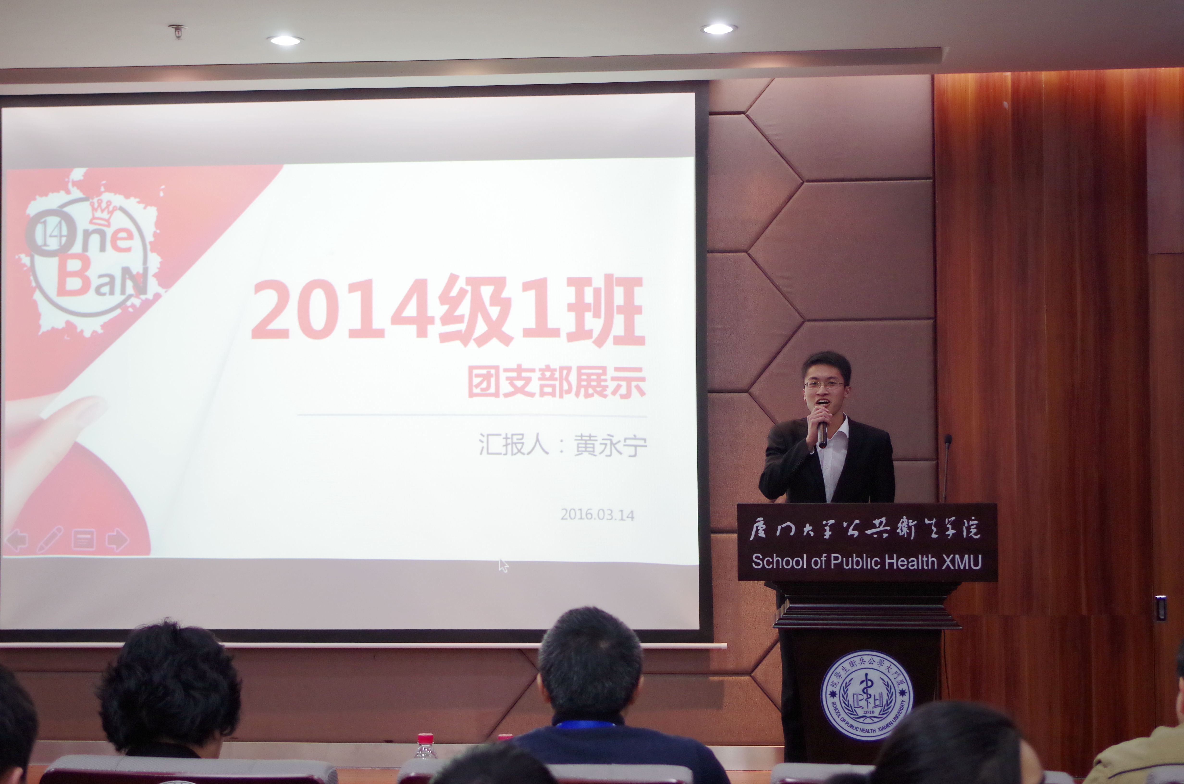 3月16日晚,公共卫生学院2015-2016学年“五四红旗团支部”暨“先进班集体”评选展示大会在曾宪梓楼101报告厅举行。全院本科生、研究生共12个团支部/班集体参加评比展示,党委副书记黄兆君老师、杨机像老师、本科生班主任刘刚教授、郑子峥老师、何承勇老师、团委黄佳佳老师、张宇斌老师作为评委出席活动。