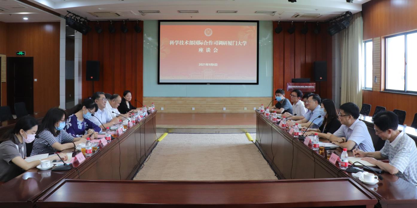 科技部国际合作司国际合作处处长杨雪梅、干部李文静,厦门市科技局党组成员、副局长曹伟民、科技合作与成果转化处处长、一级调研员吴志伟、副处长张锦榕、干部陈力,厦门大学翔安校区管委会副主任黄宇霞、校办公室副主任马进龙、科学技术处副处长(主持工作)纪荣嵘、副处长赖日泉、公共卫生学院党委副书记王晟等参加座谈。