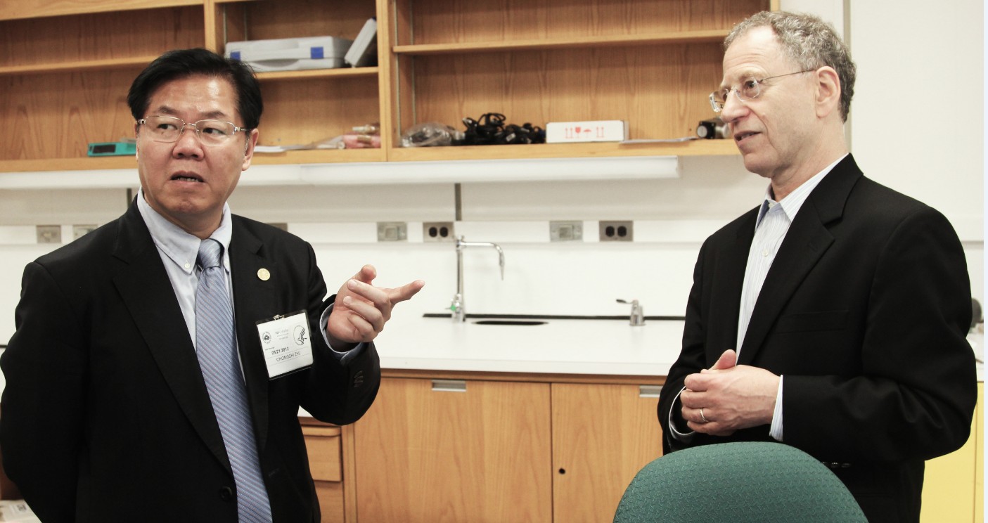 在NIH,朱崇实校长一行首先深入了解了生物医学影像与生物工程研究所(简称NIBIB)的整体研究情况并与该研究所科研负责人Richard Leapman教授进行了会谈。Richard Leapman教授介绍了NIBIB的发展历史及现状,带领朱校长一行参观了分子影像及生物影像的世界顶级实验室。