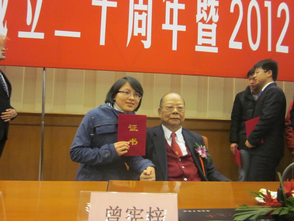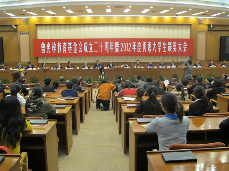 12月20日至23日期间,曾宪梓教育基金会成立二十周年暨2012年度第四期优秀大学生颁奖大会在北京人民大会堂举行。出席本次颁奖会的有原全国人大常委会委员、香港金利来集团有限公司主席曾宪梓博士、教育部副部长郝平、国务院港澳事务办公室副主任周波、英雄航天员刘洋、中国体操运动员陈一冰等。同时参加本次大会的有来自北京大学、清华大学、中山大学、厦门大学等35所院校的获奖学生代表。