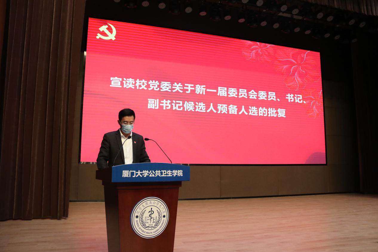随后,中共厦门大学公共卫生学院党员大会召开第二次全体会议。会议宣读关于中共厦门大学公共卫生学院委员会组成人员候选人预备人选的批复,通过选举办法和总监票人、监票人、总计票人、计票人名单。大会以无记名投票方式差额选举产生新一届中国共产党厦门大学公共卫生学院委员会委员(按姓氏笔画为序):王颖彬、方亚、庄曦、刘刚、张军、张琥、林忠宁、葛胜祥、蒲晓业。