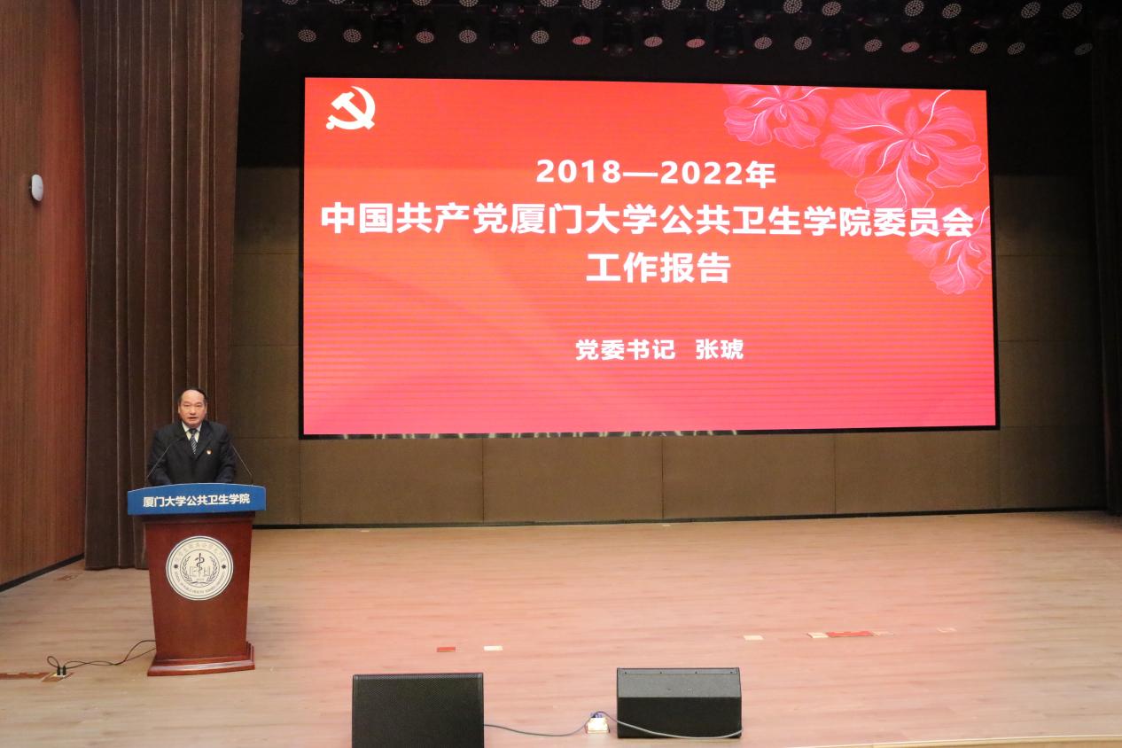 大会在庄严的国歌声中正式开幕。学院党委书记张琥代表本届党委作题为《锚定目标,坚定信心,凝心聚力,团结奋斗,加快推进高水平公共卫生学院建设》的报告。