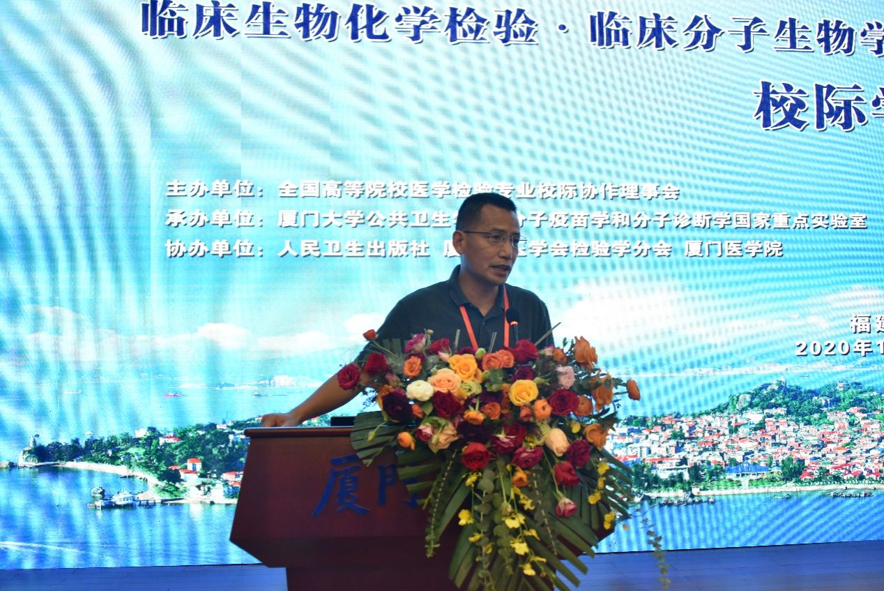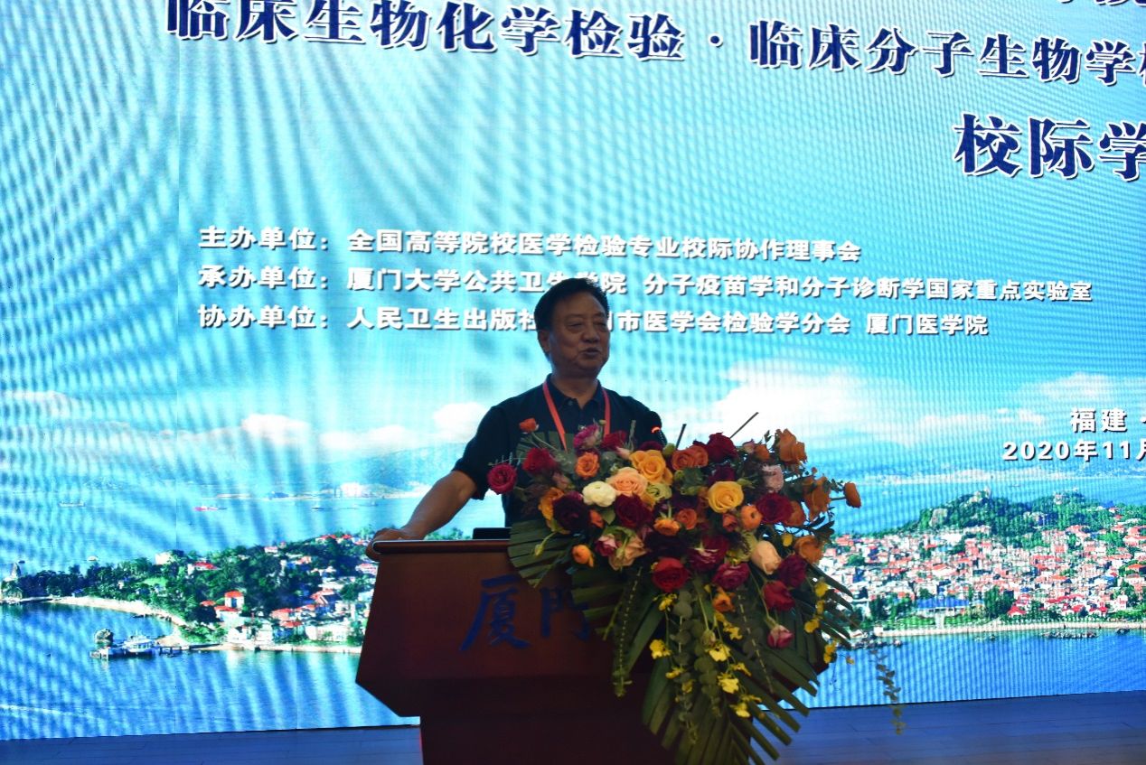 大会开幕式由厦门大学实验医学系主任郑铁生教授、武汉大学检验系主任涂建成教授主持。厦门大学校长助理、翔安校区管委会主任陈光,教育部医学技术类专业教学指导委员会副主任委员尹一兵教授,全国高等院校医学检验专业校际协作理事会理事长夏薇教授,人民卫生出版社高级策划刘水编审分别致辞。随后,中华医学会检验医学分会侯任主任委员、山东大学第二医院院长王传新教授,厦门大学公共卫生学院院长夏宁邵教授,上海交通大学医学院樊绮诗教授,重庆医科大学尹一兵教授,江苏大学医学前沿研究院院长许文荣教授分别做主题为“新冠疫情下公立综合医院发展思考”“厦门大学医学检验教育创新模式的探索与实践”“医学检验教育发展的几点思考”“高等医学教育面临的若干问题”和“新冠疫情—新医科—新时代——检验医学学科建设与教育改革展望”的大会报告。