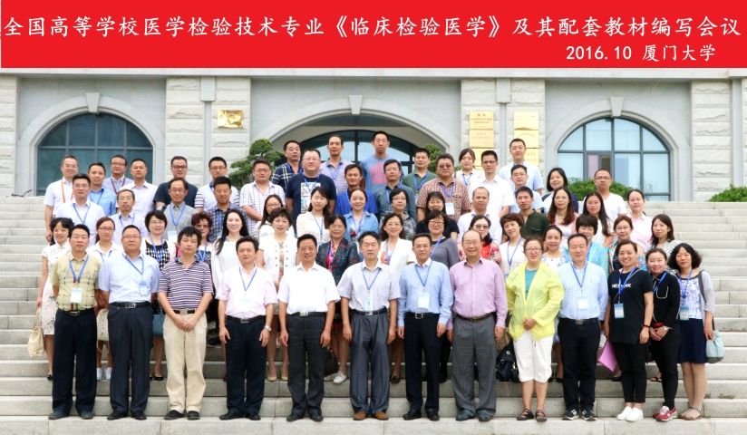 经人民卫生出版社研究,决定编写全国高等学校医学检验技术专业教材《临床检验医学》及其配套教材《临床检验医学案例分析》、《临床检验医学学习指导与习题集》、《临床检验医学》数字化与网络增值服务PPT, 并将该套教材作为全国高等学校医学检验专业第六轮暨医学检验技术专业第一轮规划教材的补充。编写会议,于2016年10月14日至17日在全国最美大学之一的厦门大学翔安校区隆重召开。由人民卫生出版社主办,厦门大学公共卫生学院承办, 我院郑铁生教授和上海交通大学医学院倪培华教授担任主编。来自上海交通大学、武汉大学、四川大学、中南大学、中山大学、重庆医科大学等42所院校的编委,共计55名专家教授参加了会议。