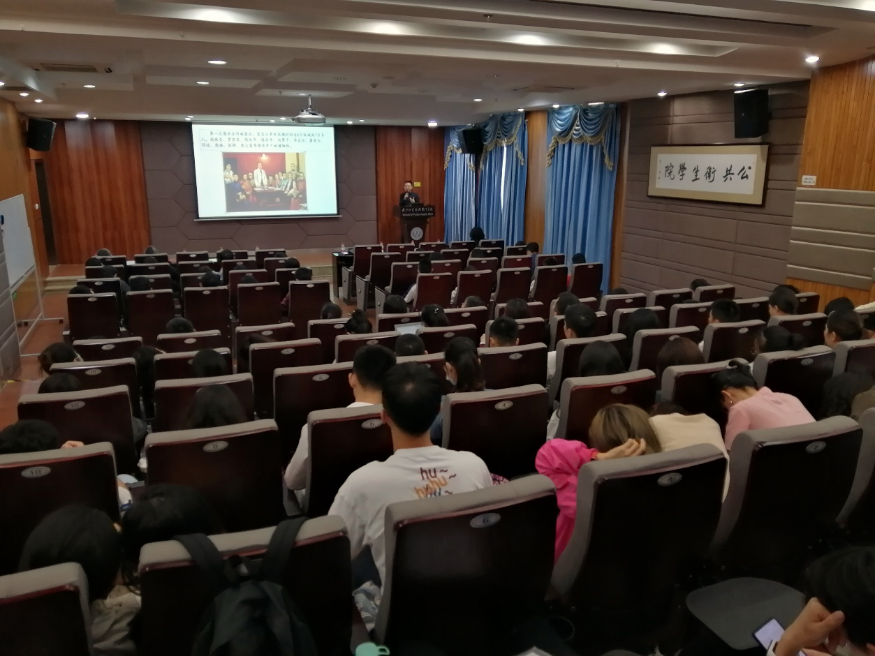学院邀请马克思主义学院贾凯副教授为全院师生作《阅史悟行:学习党史、新中国史、改革开放史、社会主义发展史的方法思维》的辅导报告。贾老师从开展“四史”学习的背景出发,系统梳理了开展“四史”学习的由来,重点分析了学习“四史”的重要性、其发展的基本脉络及如何把握“四史”之间的逻辑关系,总结强调了学习“四史”的核心要义。