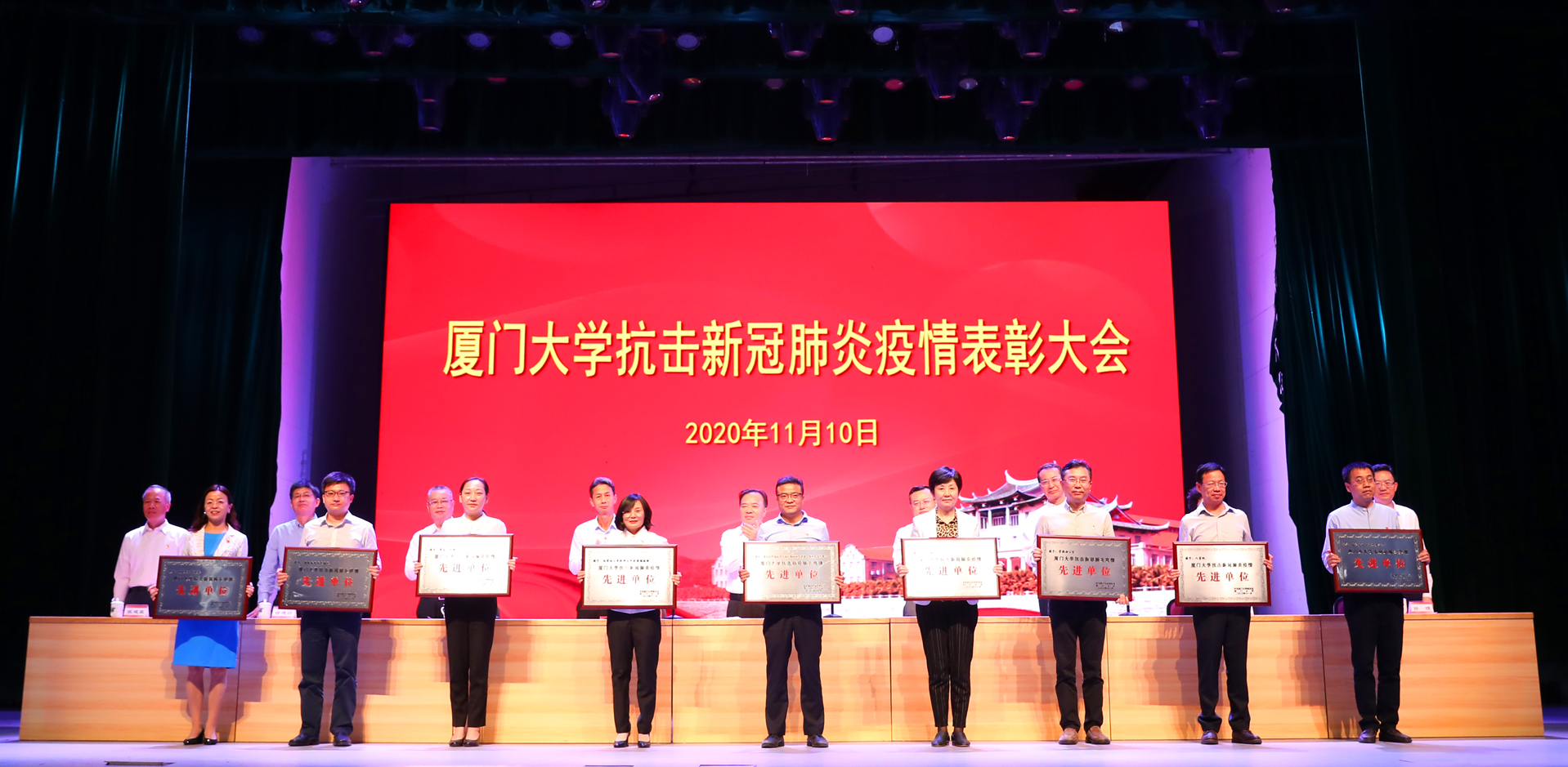 根据大会表彰决定:学院有2个单位荣膺厦门大学抗击新冠肺炎疫情先进基层党组织,分别是学院党委获厦门大学抗击新冠肺炎疫情先进基层党委、学院教工第二党支部获厦门大学抗击新冠肺炎疫情先进党支部;有12位同志被表彰为厦门大学抗击新冠肺炎疫情优秀共产党员,分别是葛胜祥、陈田木、张师音(女)、王邵娟(女、博士生)、庄春兰(女、硕士生)、洪俊平(博士生)、张丽敏(女、博士生)、张良(硕士生)、李宗霖(博士生)、汤家宝(女、博士生)、张雪洁(硕士生)、赵泽宇(博士生);国家传染病诊断试剂与疫苗工程技术中心荣获厦门大学抗击新冠肺炎疫情先进集体;有19位师生荣获厦门大学抗击新冠肺炎疫情先进个人,分别是苏迎盈(女)、曾雁冰(女)、张雅丽(女)、欧明展、沈鑫、章韵洁(女)、洪聪明、张荣为、张玉云(女)、唐济贤、吴坤、叶江辉、刘晓峰、袁权、刘伟(博士生)、马健(博士生)、黄小芬(女、博士生)、陈奋天(博士生)、芮佳(硕士生)。