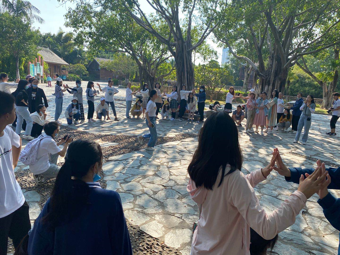 2020级本科生在学长学姐的带领下,在校阳光心理志愿者团队的指导下,在风景秀美的园博苑开展心理健康素拓活动,进一步拉近同学之间的情感,增进班级凝聚力,提升学生抗压和自我调节能力。