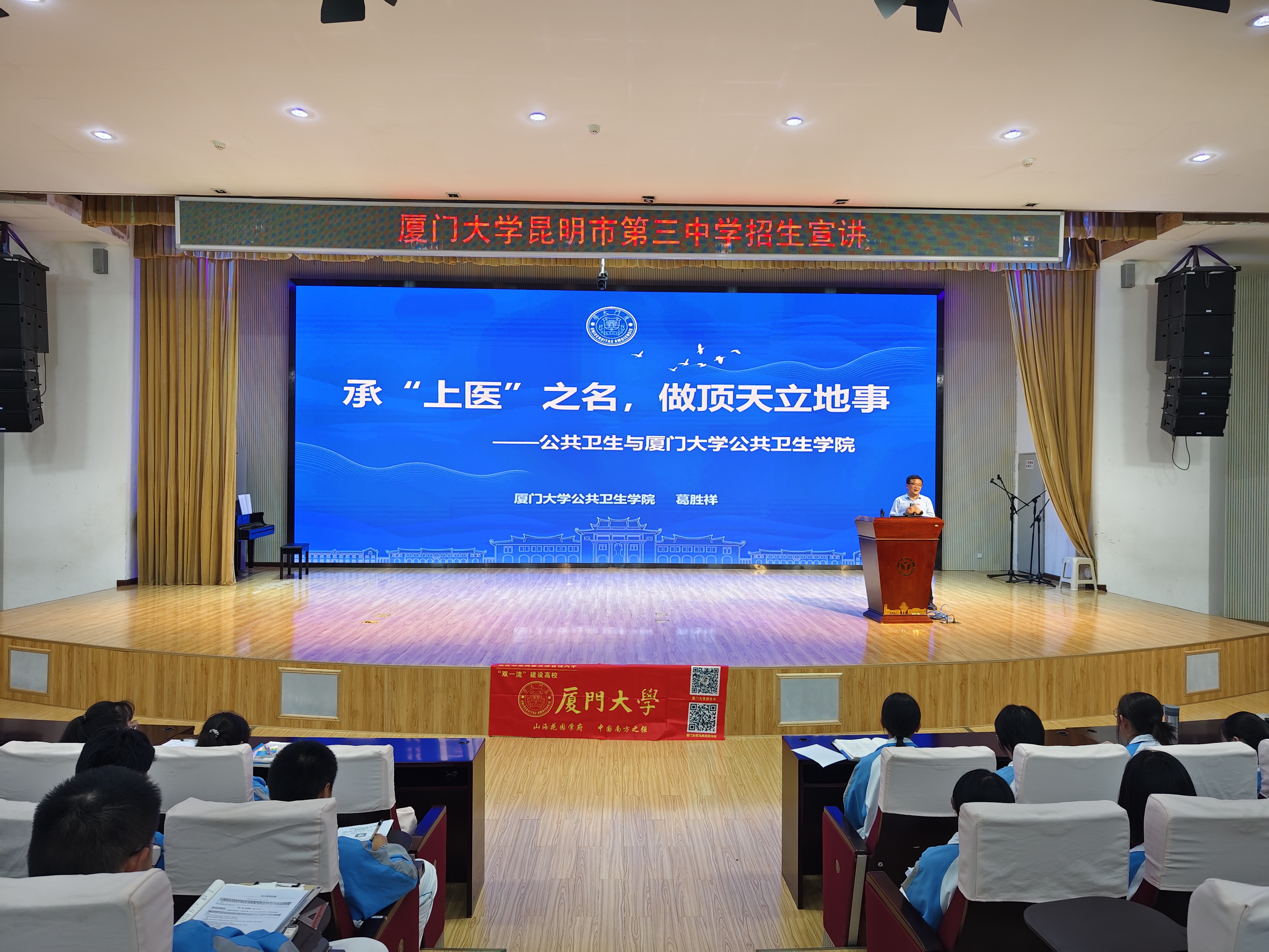 为进一步推动招生工作全年常态化、切实提升我校的影响力和本科生生源质量,公共卫生学院积极响应厦门大学本科招生宣传分省(市)学院负责制,高度重视责任省份云南省本科招生宣传工作,不断加强与云南省各重点中学的沟通交流。