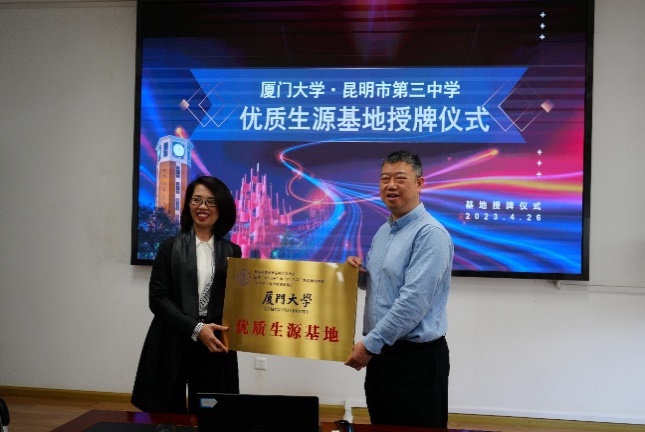 工作组在昆明三中、云南民族大学附属中学、昆明八中先后进行了优秀生源基地授牌和厦大书籍赠予仪式,并与三所中学进行了座谈交流。