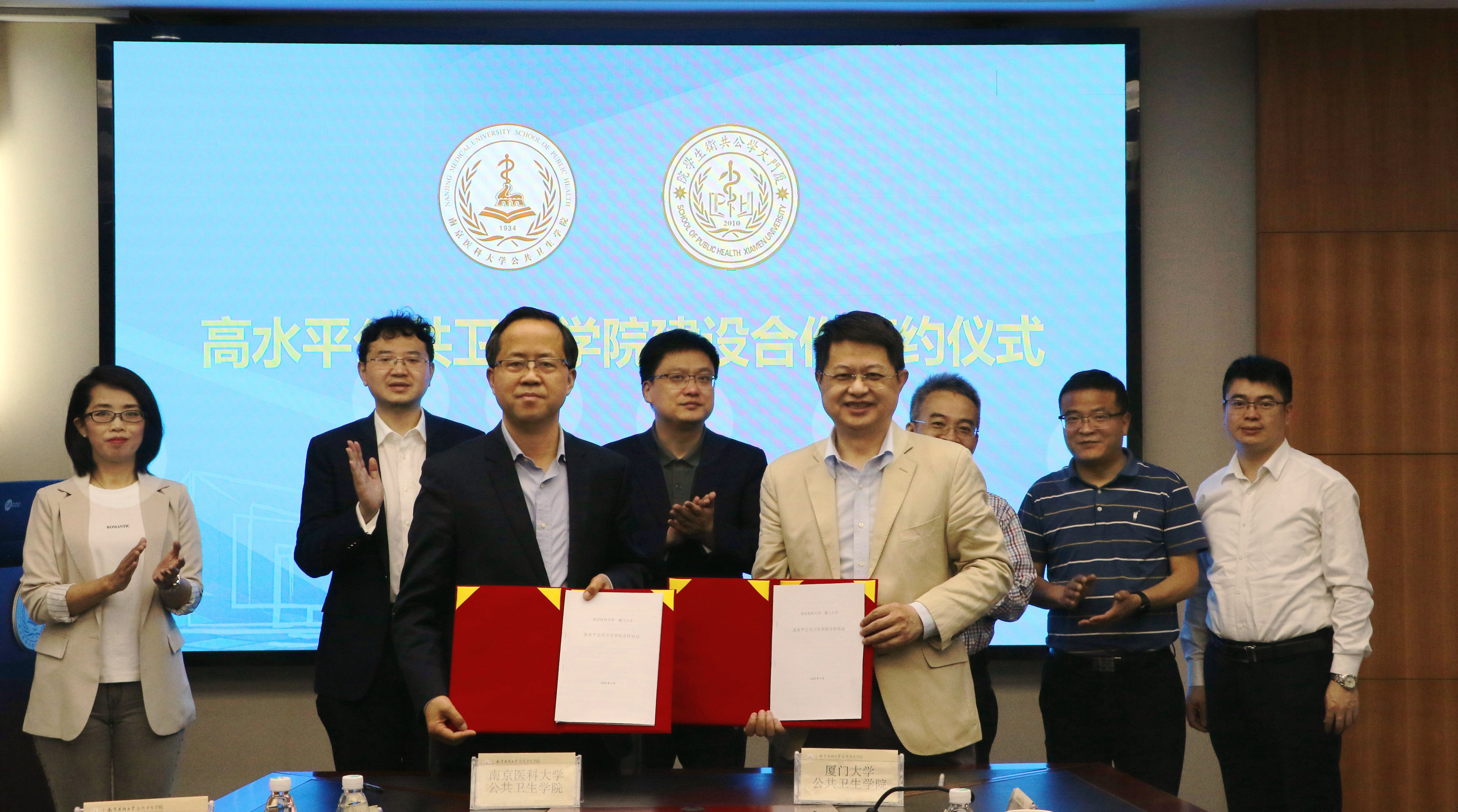 王建明详细介绍了南京医科大学公共卫生学院的发展历程,以及近年来学院在教育教学、人才培养、科学研究、师资队伍等方面取得的成效。随后,双方围绕本科教学改革、研究生培养模式、公共卫生队列建设和管理以及实习基地建设等内容进行了深入的交流和探讨,就高水平公共卫生学院建设以及产教融合平台合作事宜达成共识,并签署合作意向书。