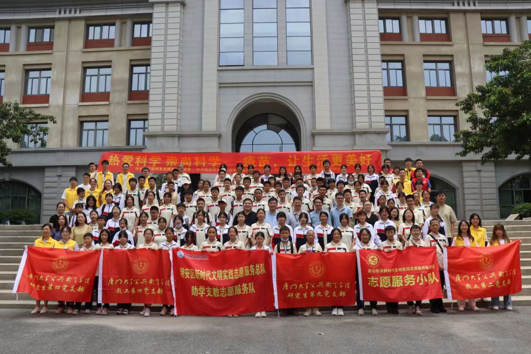 此次活动吸引厦门市莲河中学113位学生报名参加,公共卫生学院教工第二、四党支部,研究生第四、九党支部,翔安区新时代文明实践志愿服务总队助学支教志愿服务队,香山街道新时代文明实践志愿服务队党员志愿服务小队的相关老师、研究生组成志愿服务团进行讲解。志愿服务团带领同学们聆听厦门大学百年校史和科普讲座,参观实验室及高端科研设备,了解实验室最新科研成果,通过启迪科学思维、激发学习动力,在学生心中播撒了热爱科学的“种子”。实验室主任夏宁邵教授率管理团队共同出席此次活动。